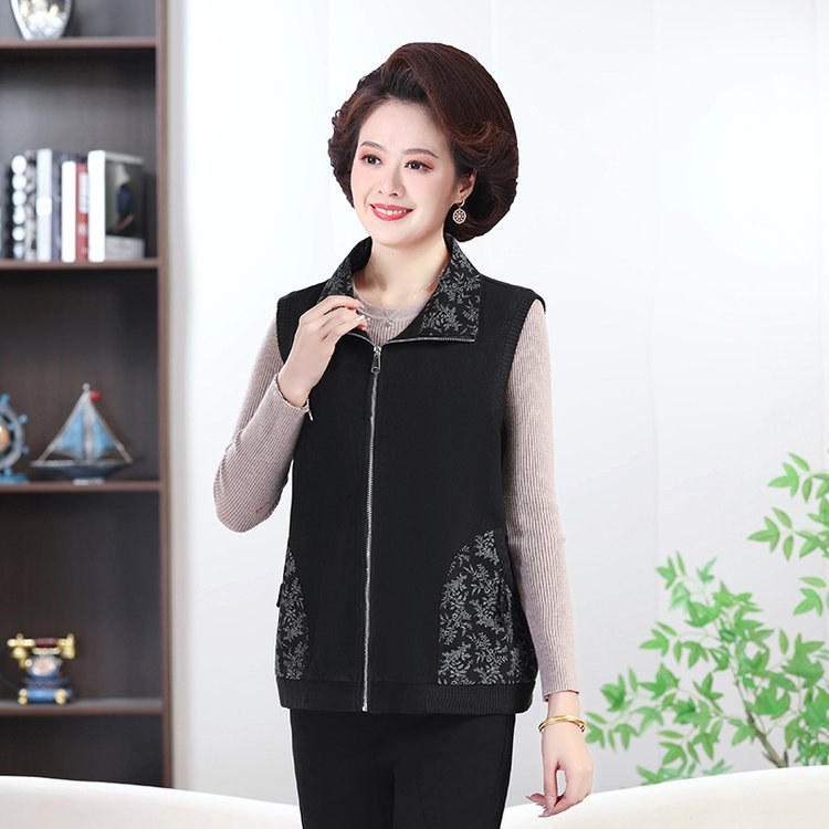 老人服春と秋の奥さんはお年寄りのベストを着ています。