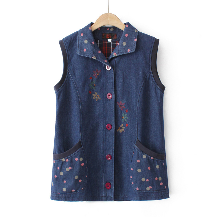 中老年马甲女春秋牛仔上衣妈妈拉链无袖坎肩马夹奶奶背心外穿