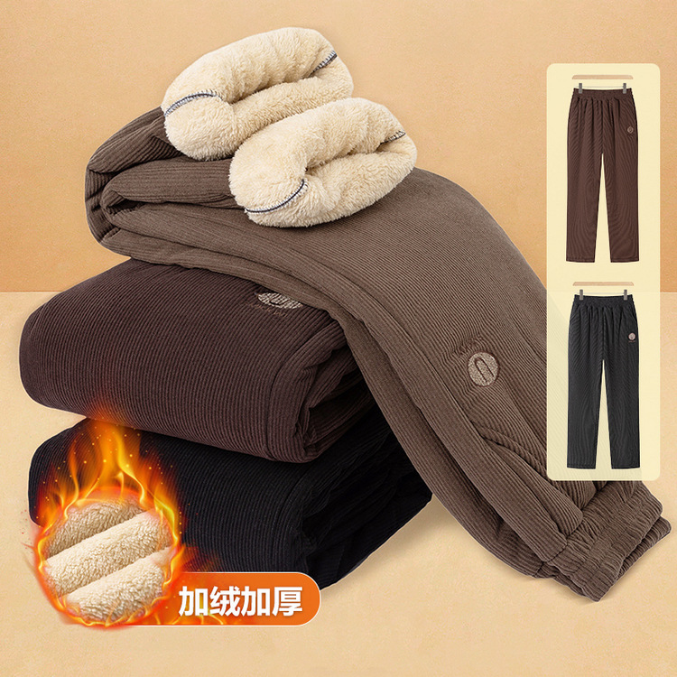 灯芯绒中年妈妈秋冬季长裤2025新款加绒加厚中老年人奶奶外穿棉裤