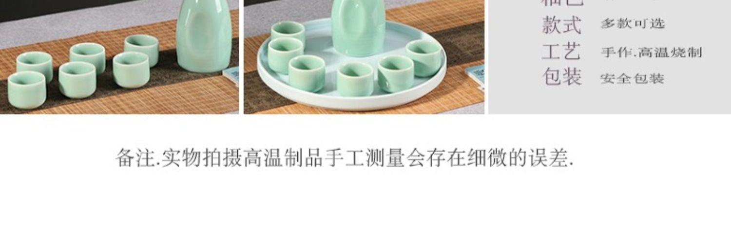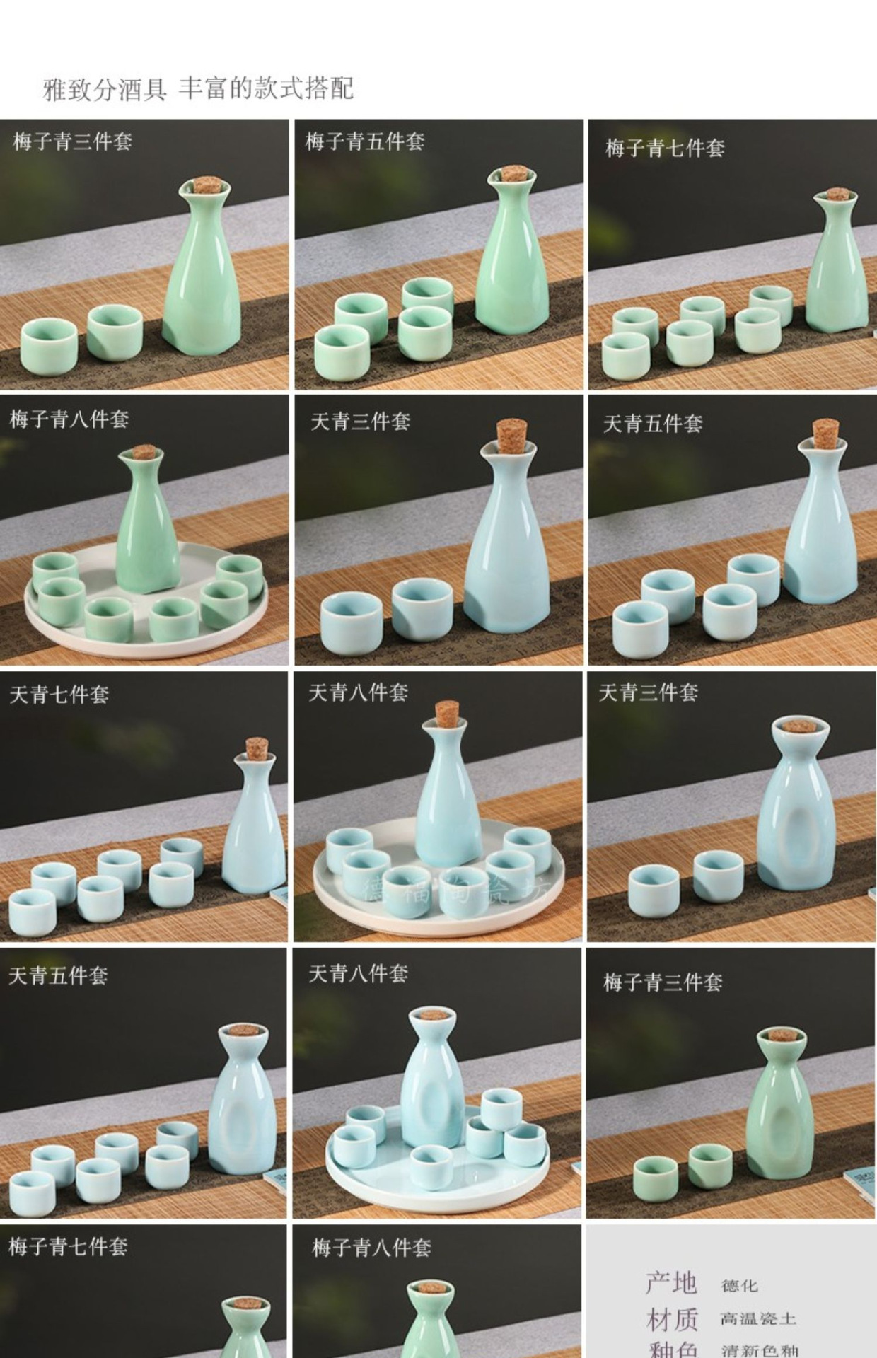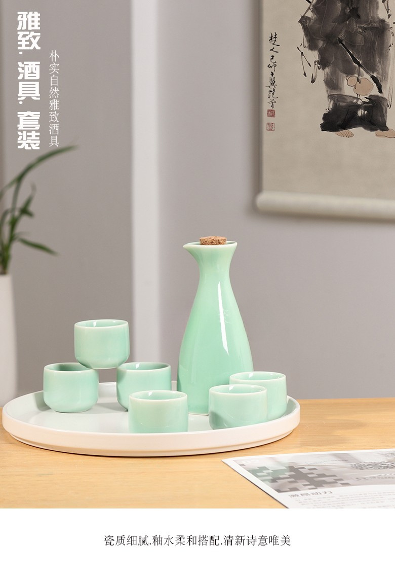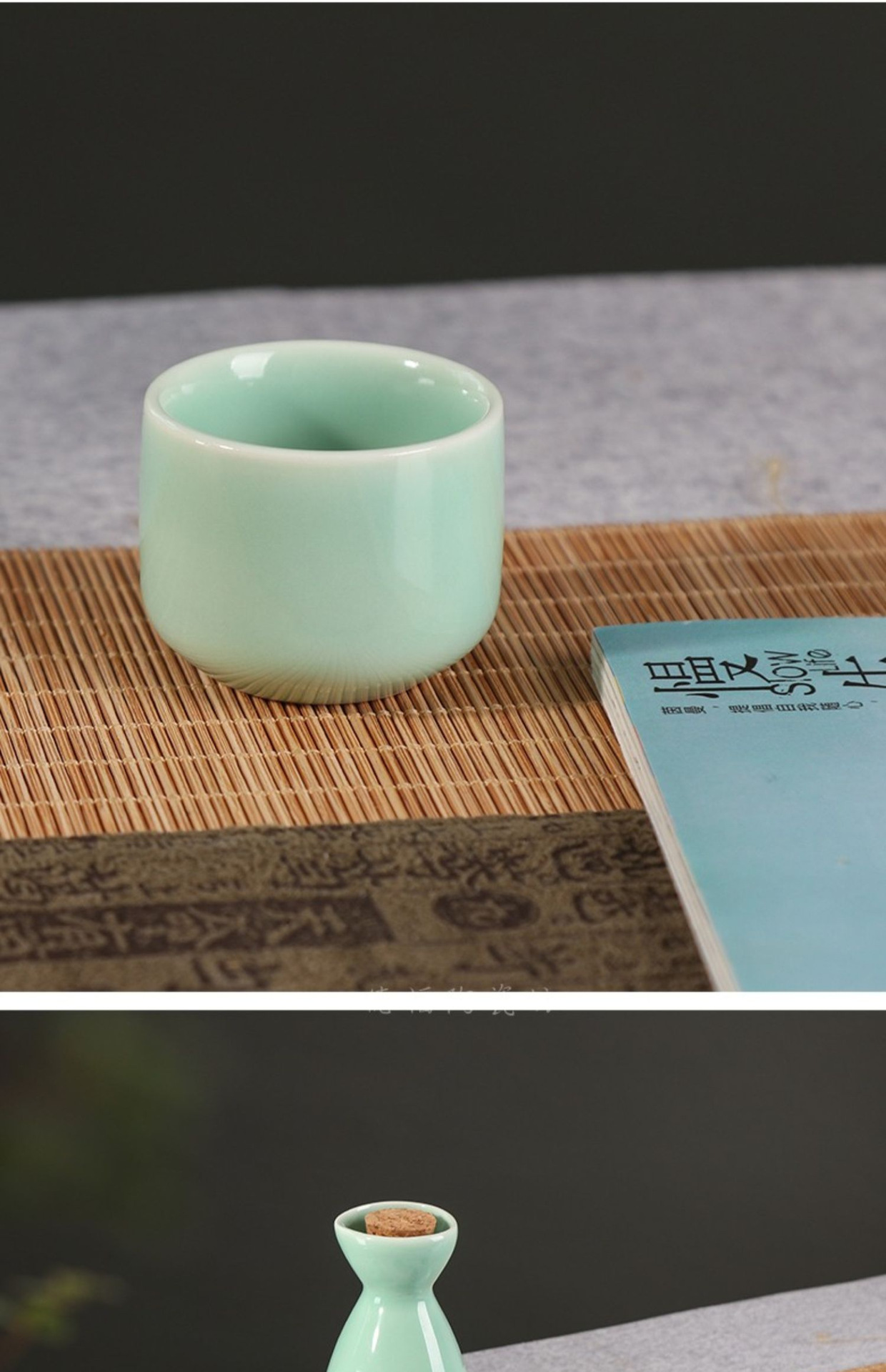 陶磁器の青磁の清酒器のセットの小さい白酒の分酒器の中国式の家庭用の杯の壺は復古風の温酒の杯をまねます。