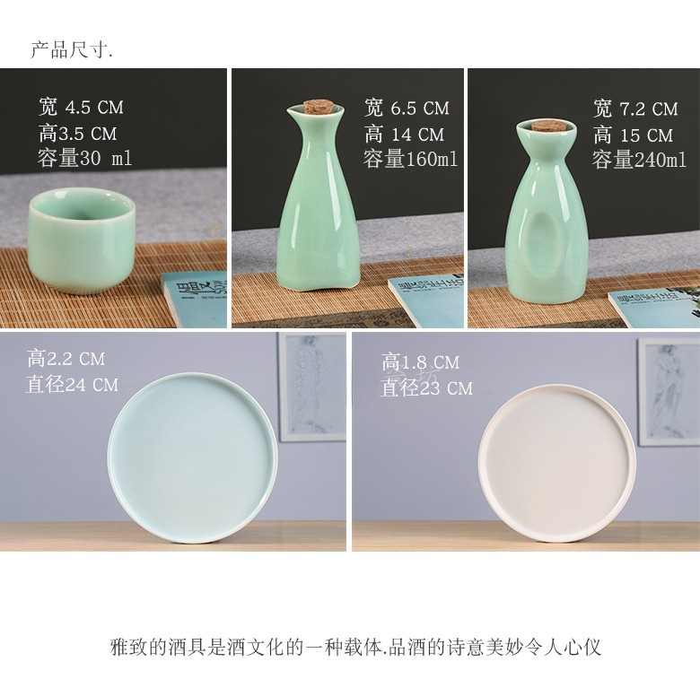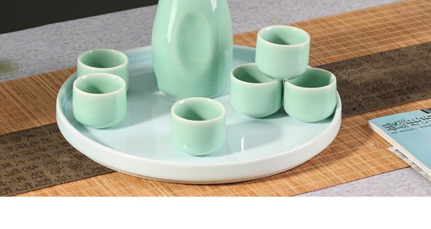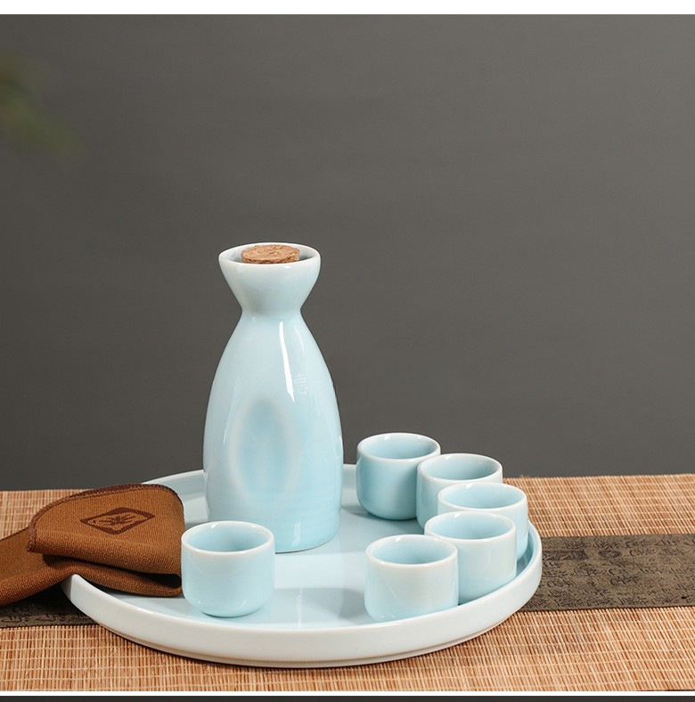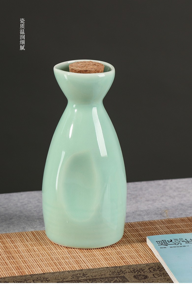 陶磁器の青磁の清酒器のセットの小さい白酒の分酒器の中国式の家庭用の杯の壺は復古風の温酒の杯をまねます。