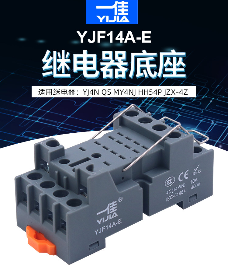 一佳YJF14A-EミドルMY4N小型リレーHH54ベースシート14脚PYFタイム4セットソケット