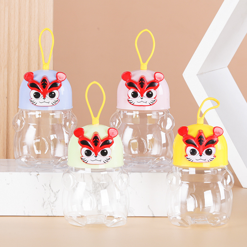 新品タイガー200ml手提げ漫画透明プラスチックppボトルクリスタル泥カラー泥分注バレル食品包装缶