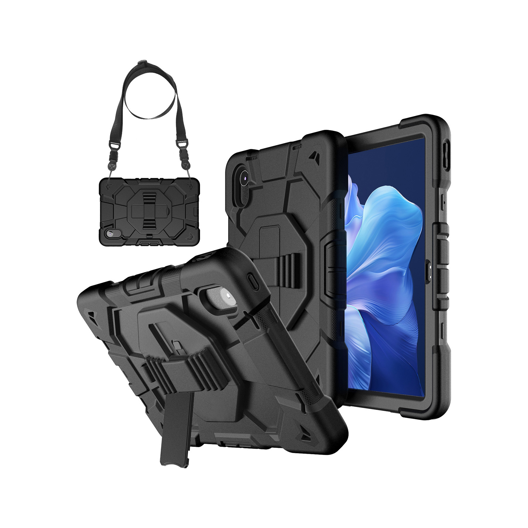 Samsung TabA9Plus 11inch タブレットPCスタンド シリコン製落下防止保護ケース ストラップ付き 多機能フルカバー