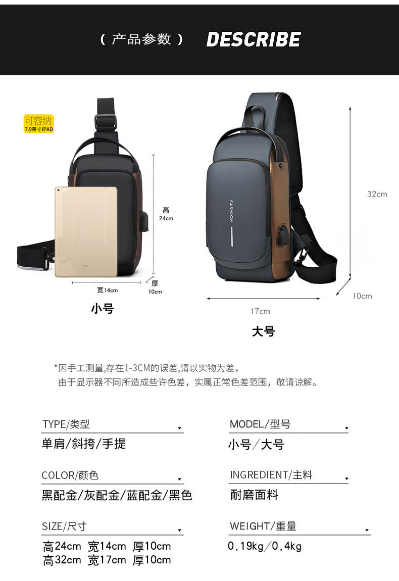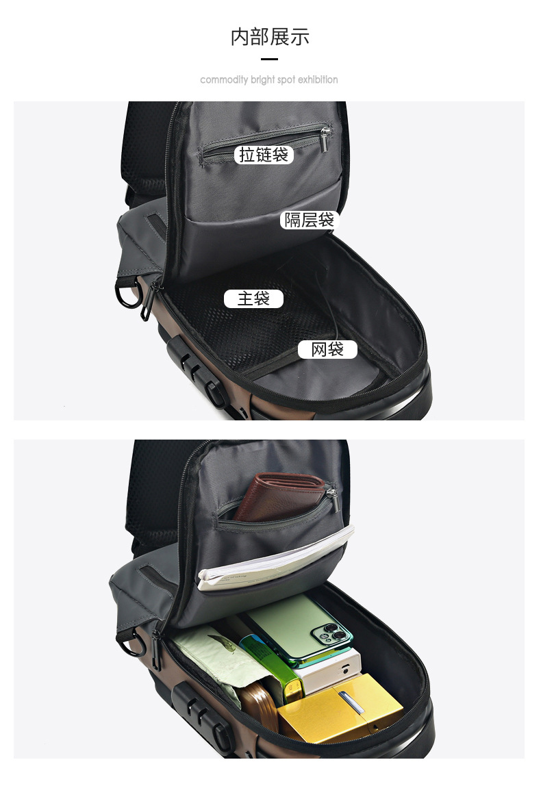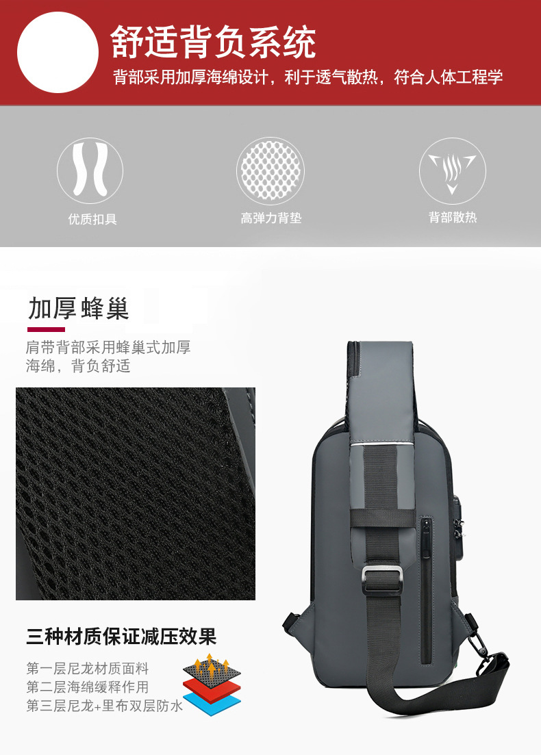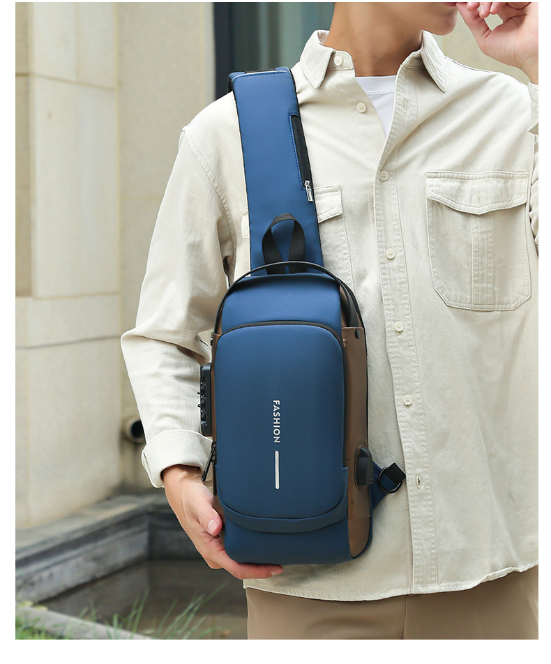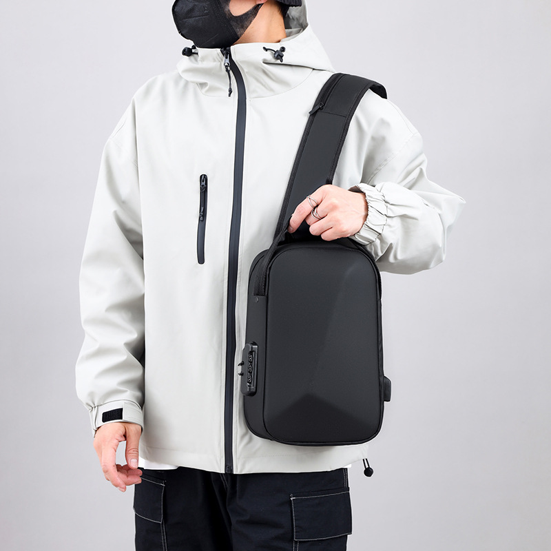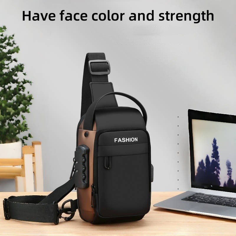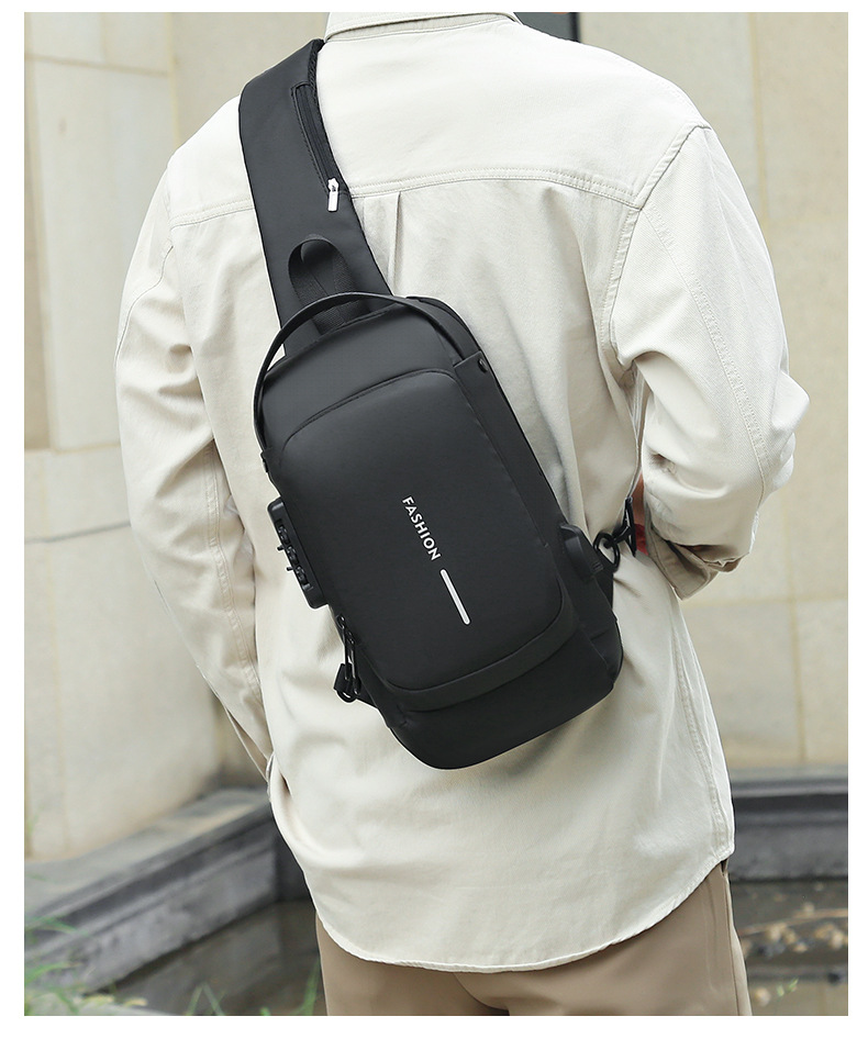 新型男性胸カバンパスワードロック盗難防止大容量多機能USB斜めショルダーバッグビジネス通勤手持ちシングルショルダー
