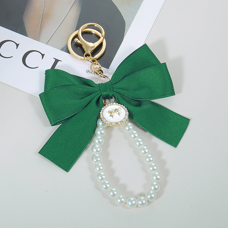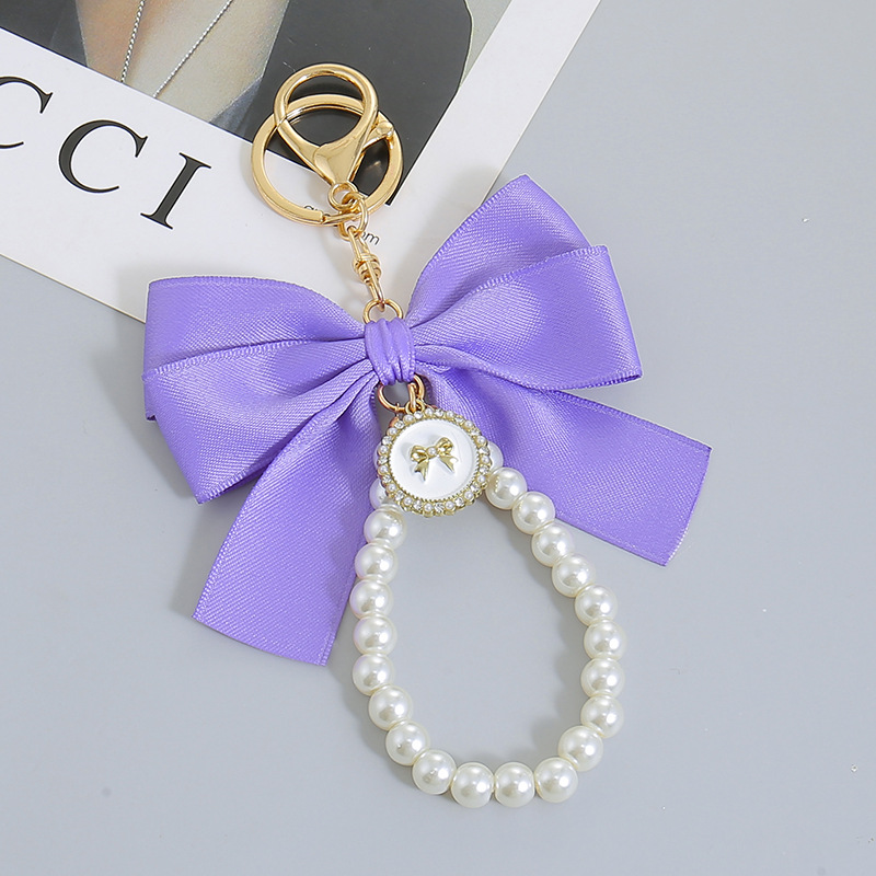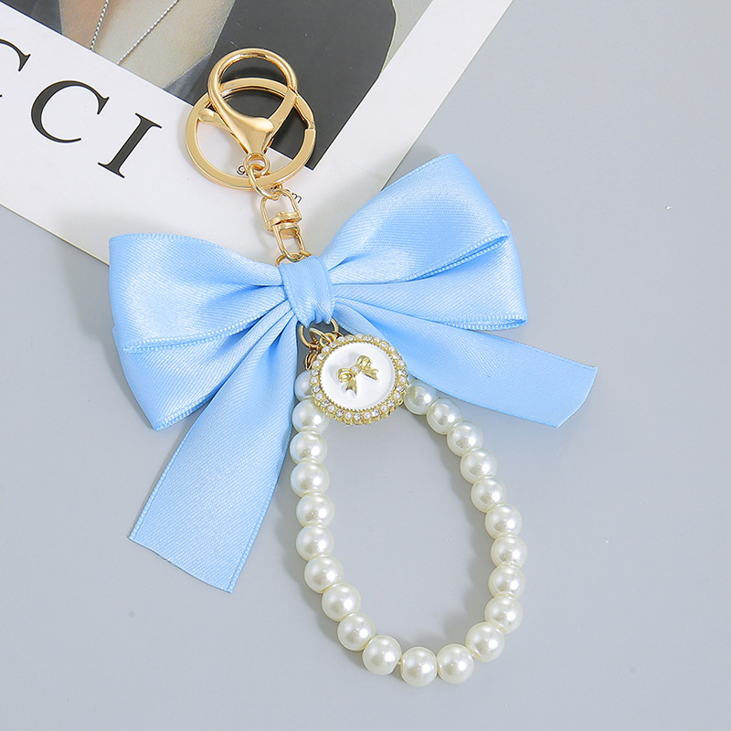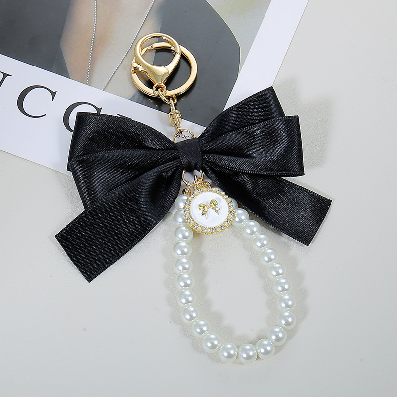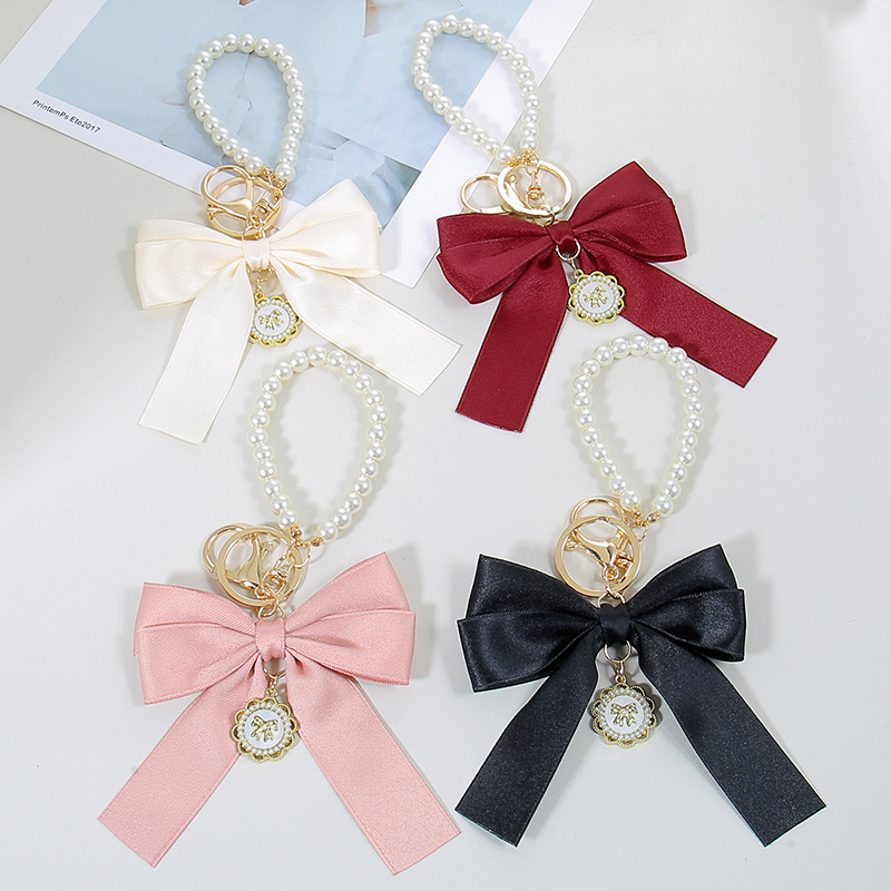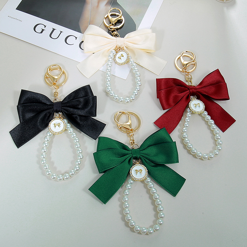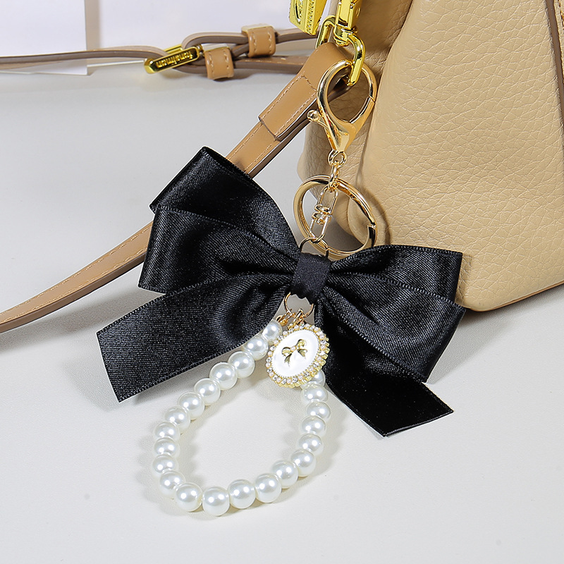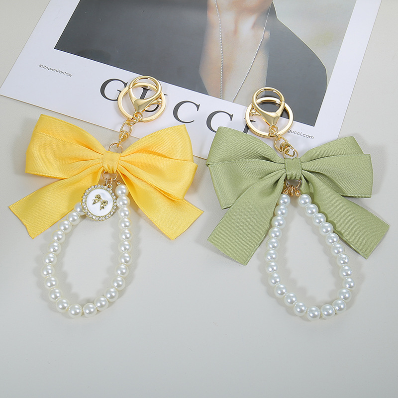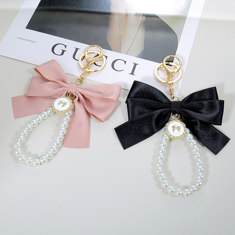 国境を越えたリボン蝶ネクタイ真珠手提げチェーン短鎖キーホルダーファッションバッグ掛け飾り女性車載装飾蝶ネクタイ