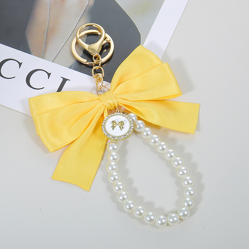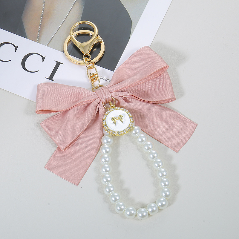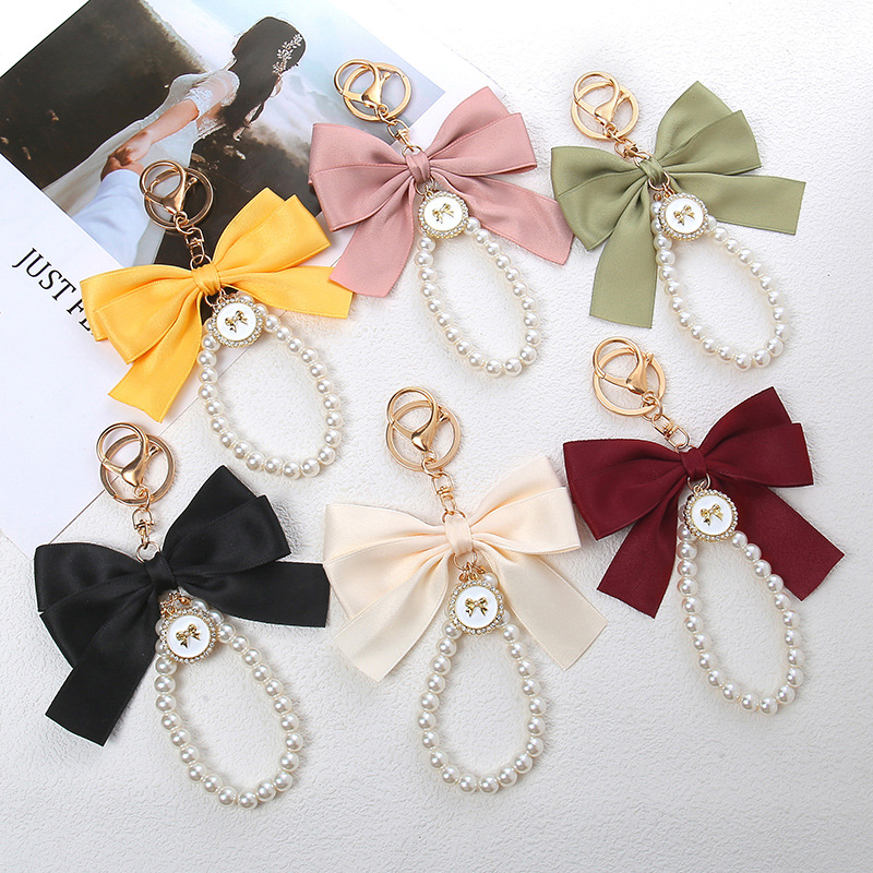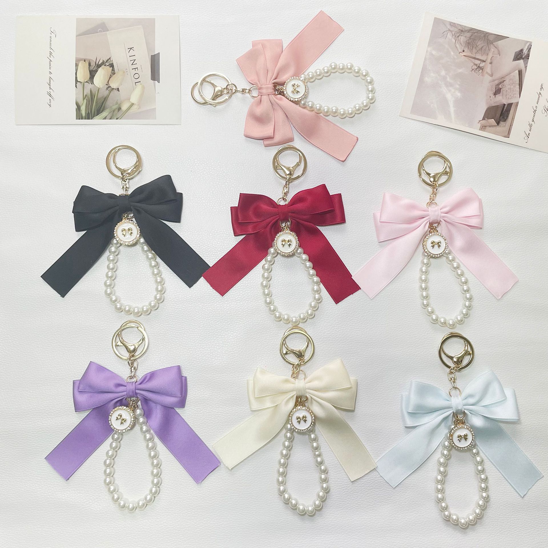 韓国版の小香風の大きい蝶結びの真珠のチェーンのキーホルダーのリボンのストラップの手作りの髪飾りの自動車のアクセサリー