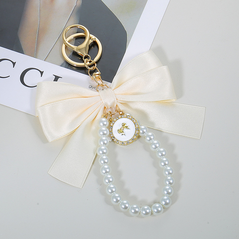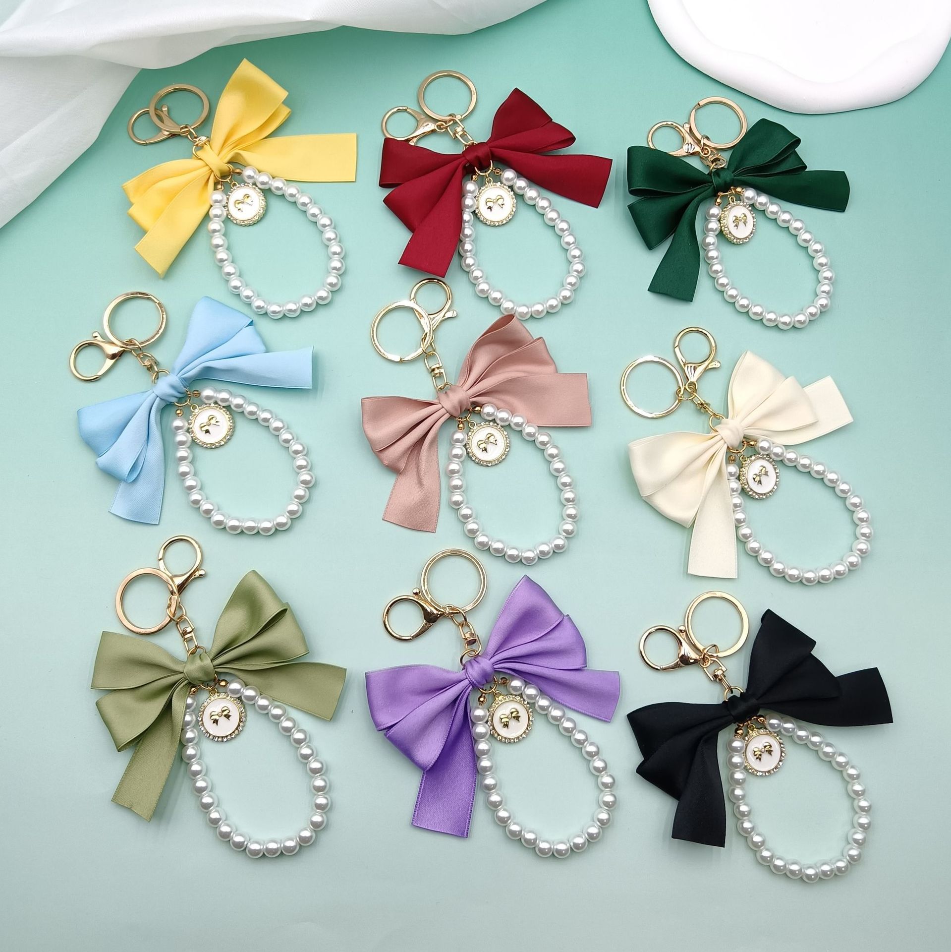 卡通简约蝴蝶结珍珠串手链钥匙扣女汽车包包钥匙链挂件配饰小礼品