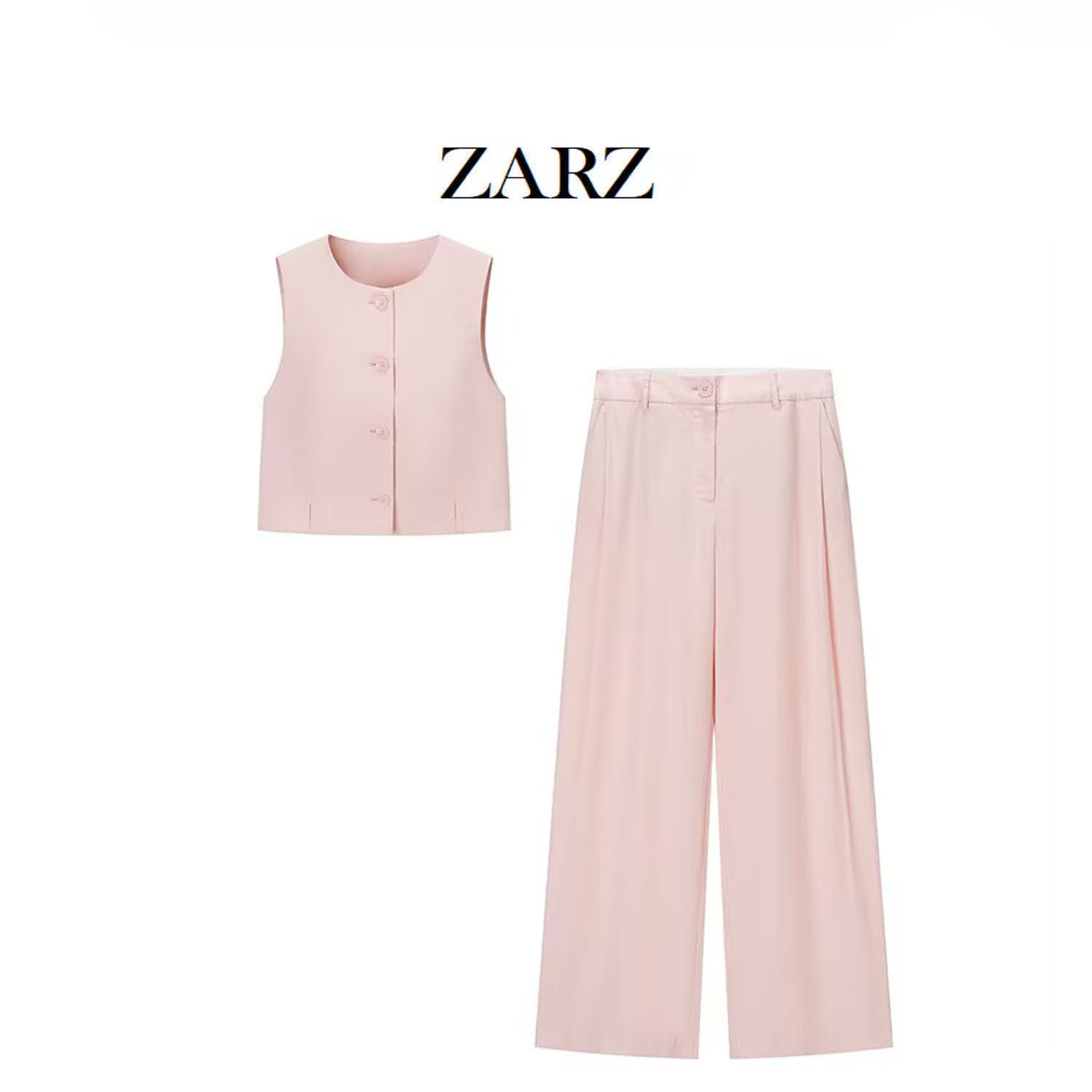 ZARZ 自制 欧美风 新款女装 洋气时髦开叉设计短背心打皱宽腿裤