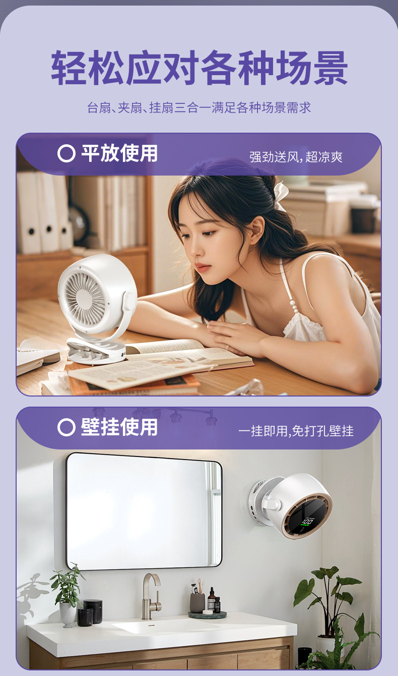 新型スマートリモコン循環ファン100速タービン家庭用壁掛けデジタル表示定時静音クリップファン
