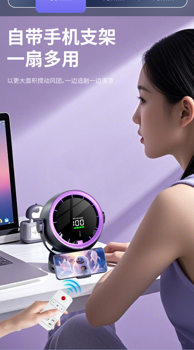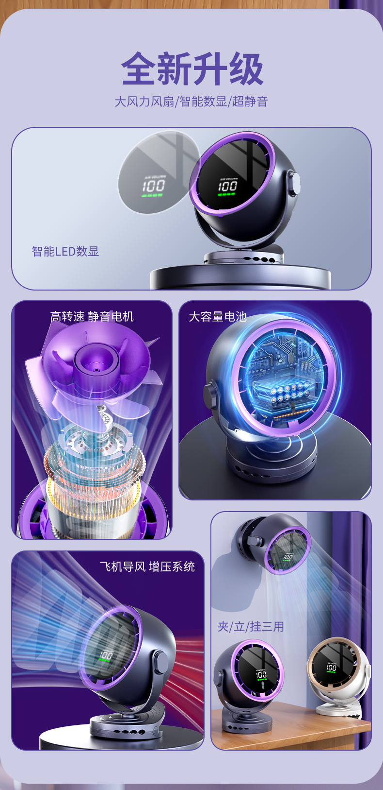 新型手持ち高速ファンタービン100速無極変速氷敷ファン走馬灯デスクトップデジタルファン