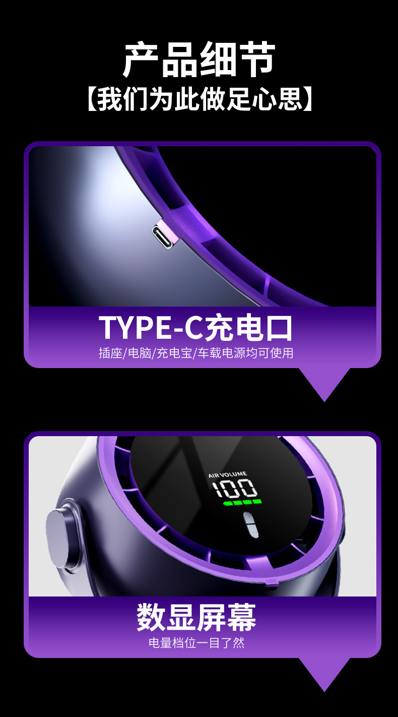 国境を越えた新型無葉首ファンusb充電怠け者静音ミニ学生首ファンプレゼント
