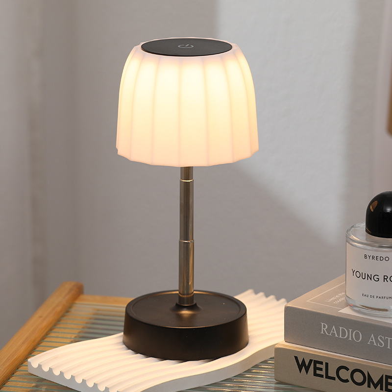 ベッドの上の雰囲気の電気スタンドは充電可能です。