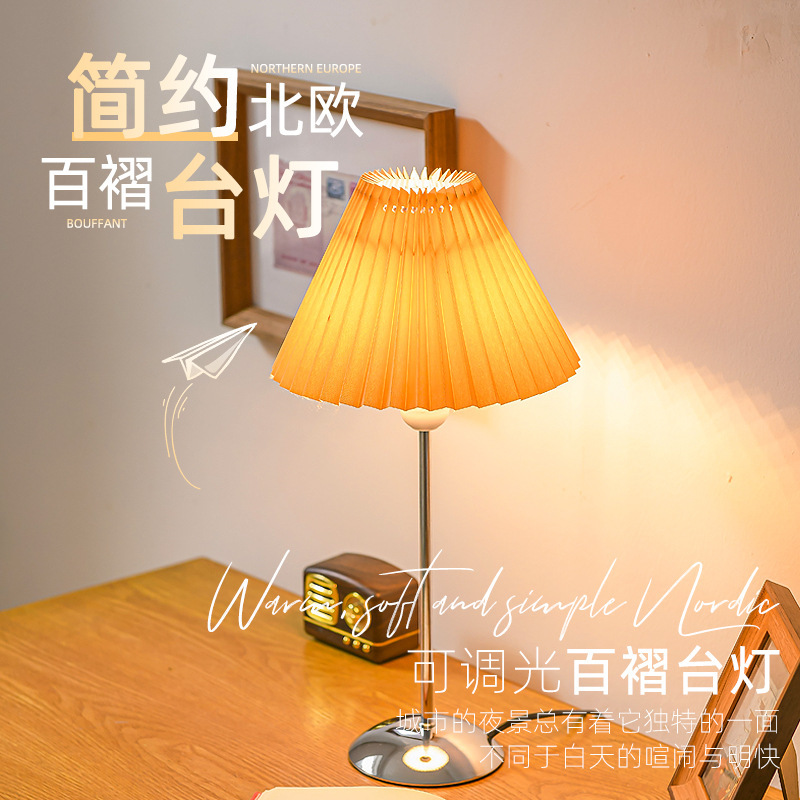 Ins新型北欧創意百ひだ布芸客間寝室雰囲気ベッドヘッドランプレトロ雰囲気小夜灯電気スタンド