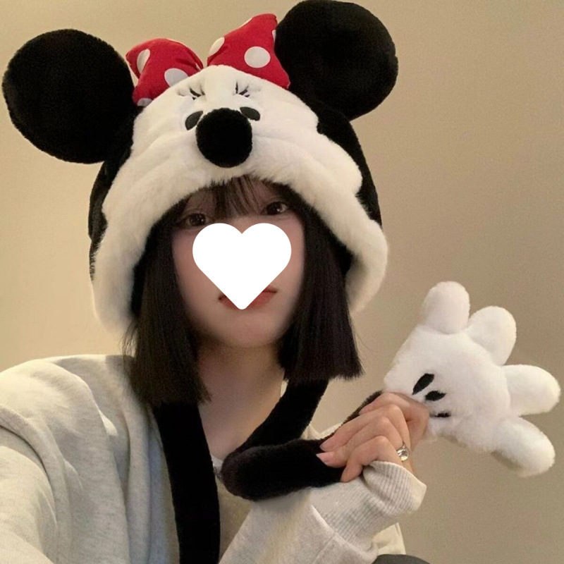 ミッキーマウスの唐ダックのかわいい漫画の帽子の子供のベルベットは冬の保温防寒毛のふわふわしたマフラーの帽子を厚くします