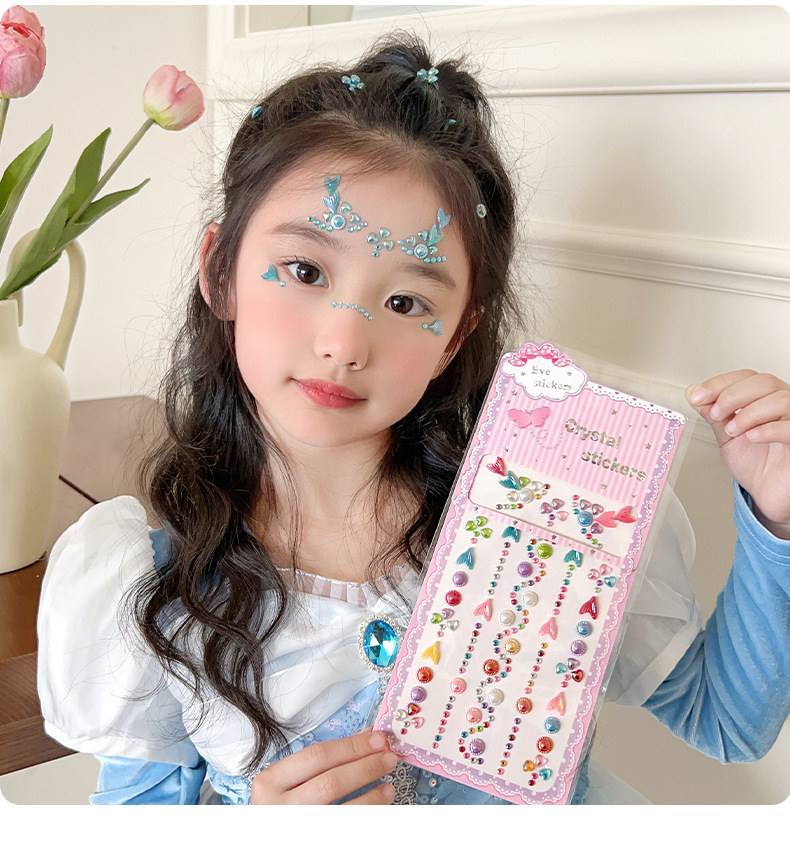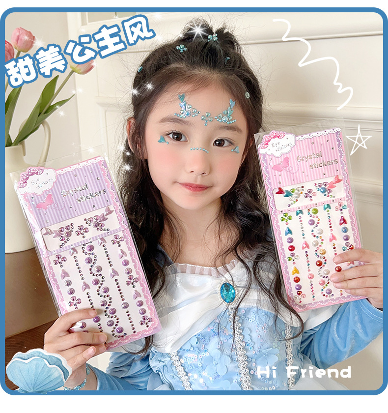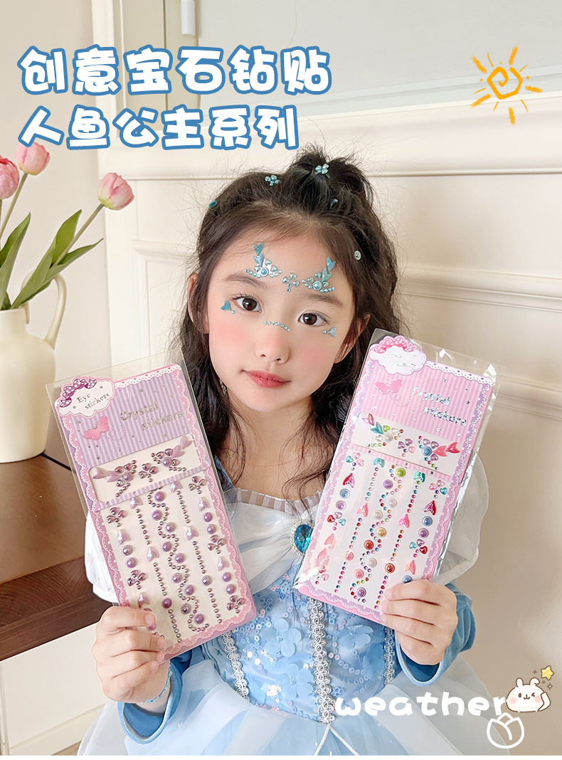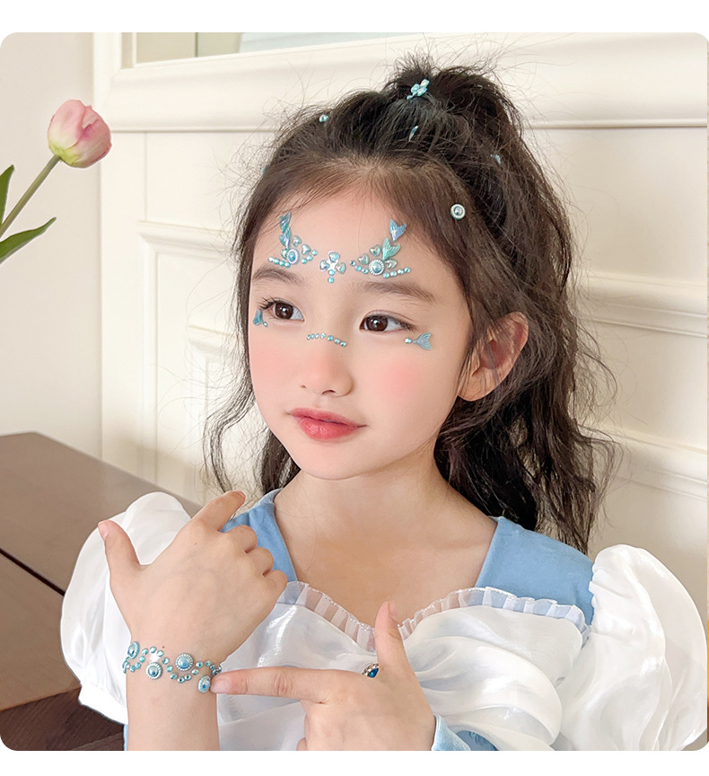 子供のフェイスメイク装飾自己粘着ダイヤモンドステッカーステージダイヤモンドステッカーマーメイドカラーダイヤモンドコンサートメイク装飾ステッカー