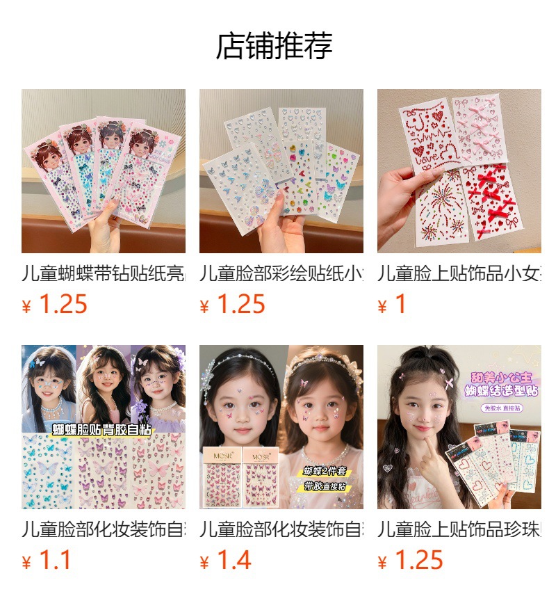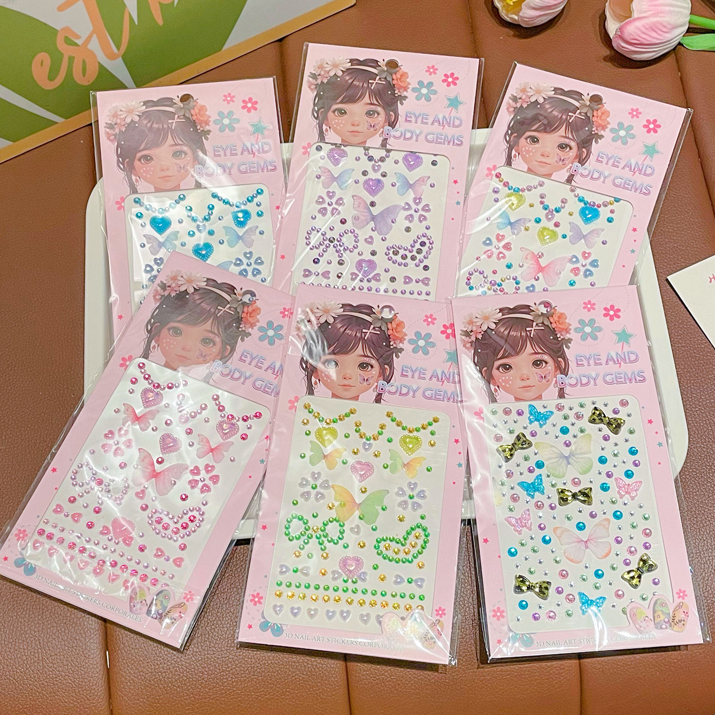 防水持久脸部宝石贴纸卡通蝴蝶立体贴画舞台化妆饰品宝宝头饰儿童