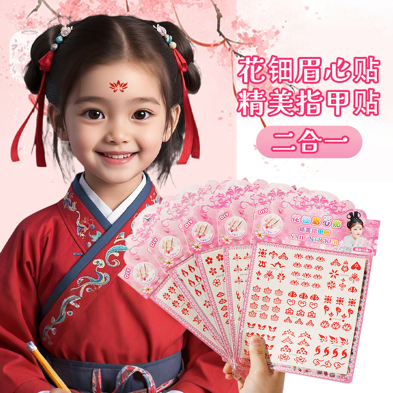 2025新型子供古風漢服眉間に爪を貼って、二合一の女の子が幼稚園の奨励シールを披露します。