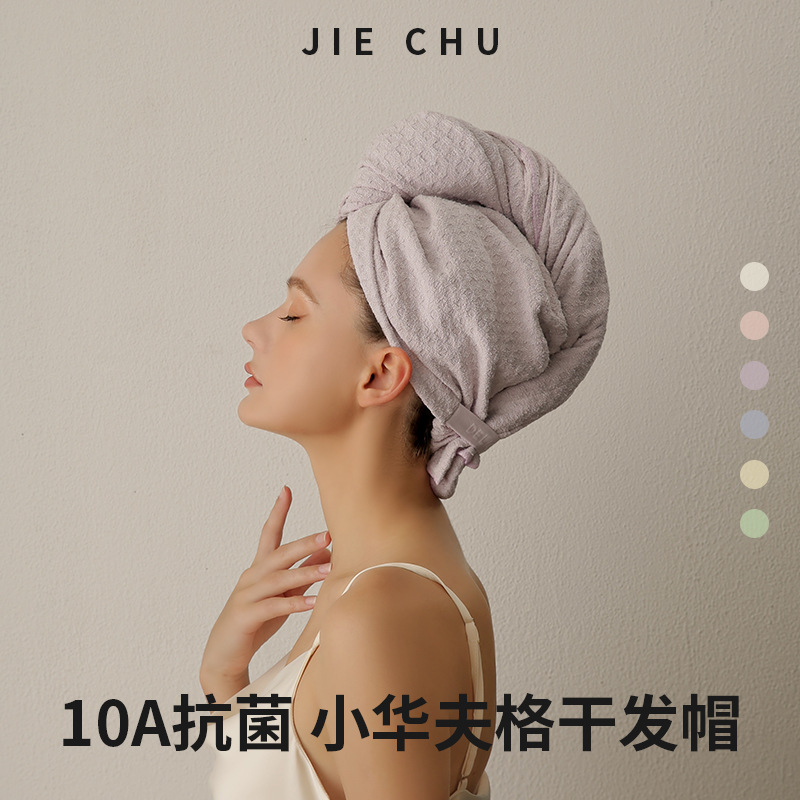 华夫格干发帽10A抗菌浴室纯棉包头巾透气女加长速干吸水加厚浴帽