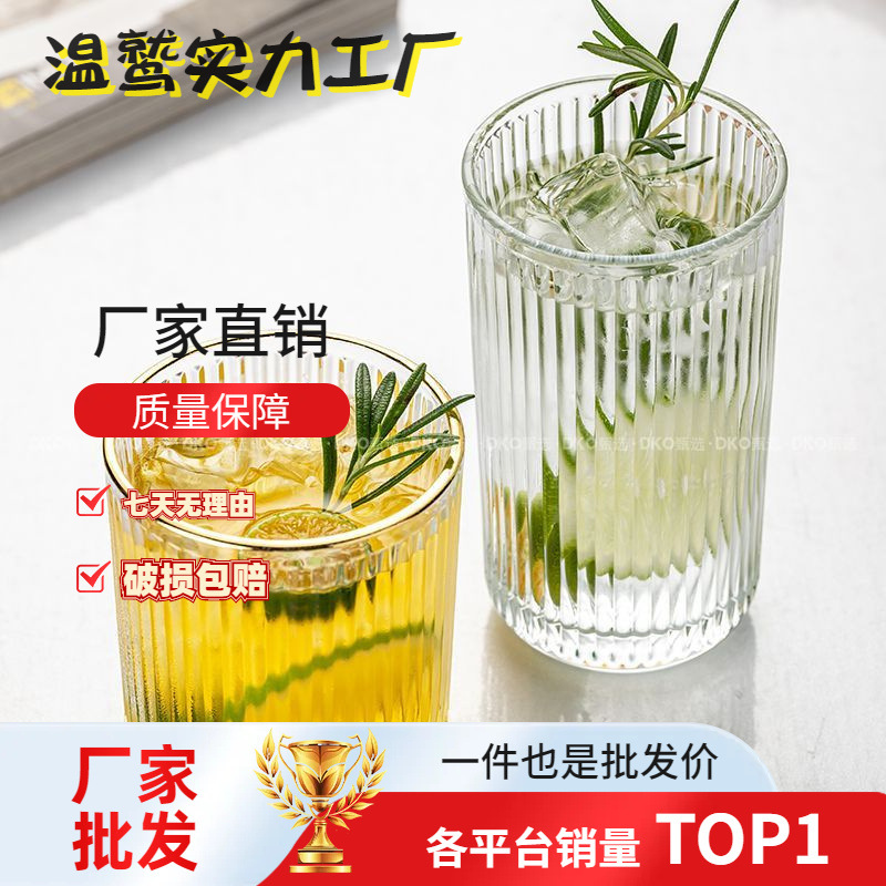 ストライプドリンクカップ縦カップ日本式カップ高級感ガラスカップカップカップ家庭用コーヒーカップins風