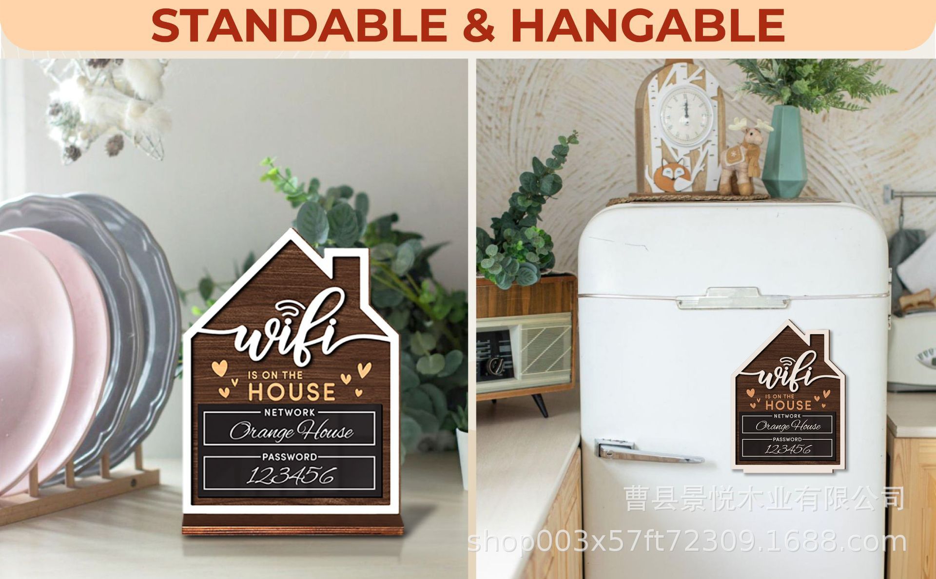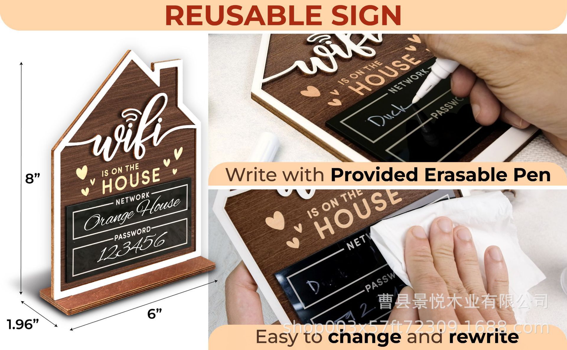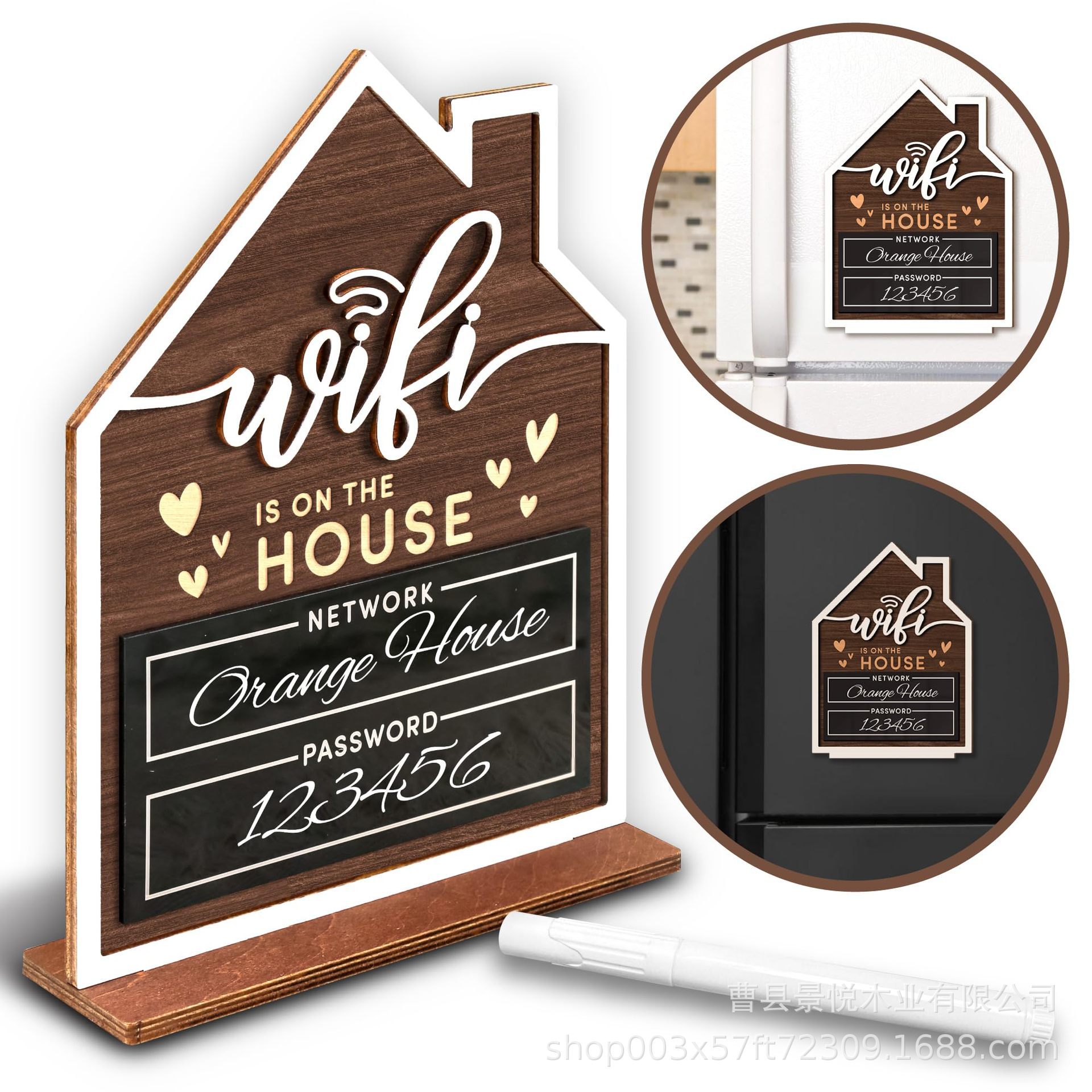 木製のwifiパスワード提示カードのデスクトップはデスクトップの手書きの家の形を並べてWiFiパスワード展示カードを並べます。