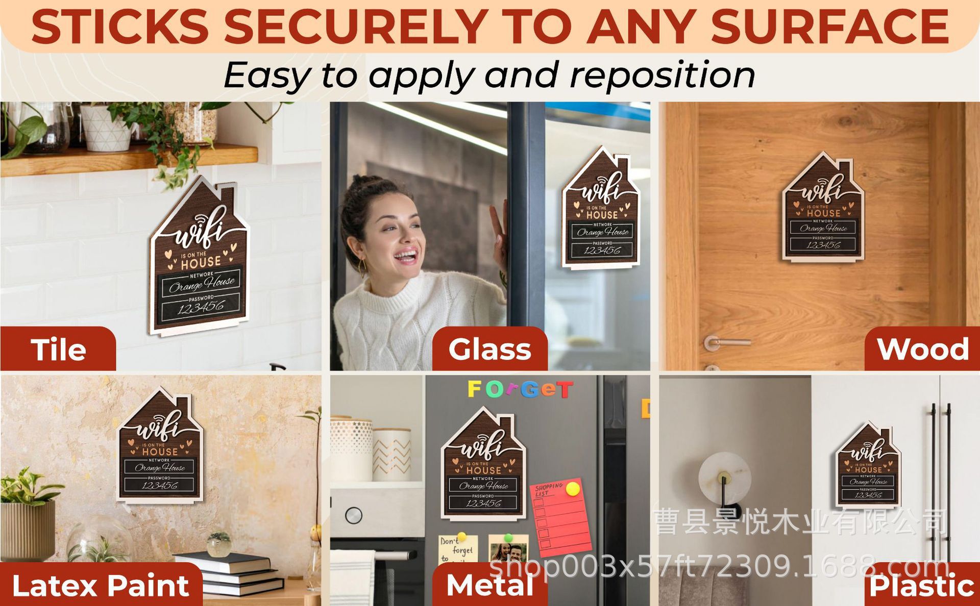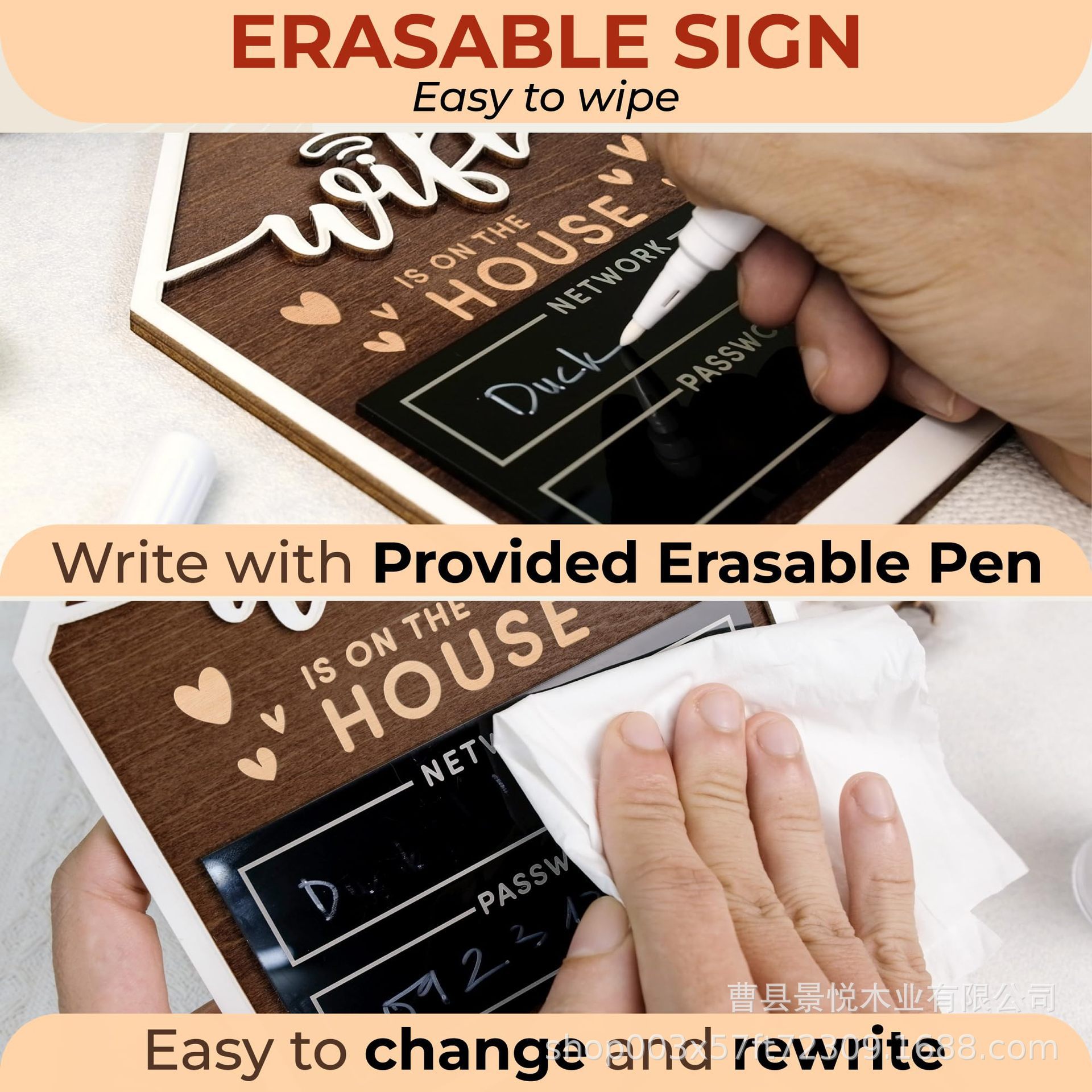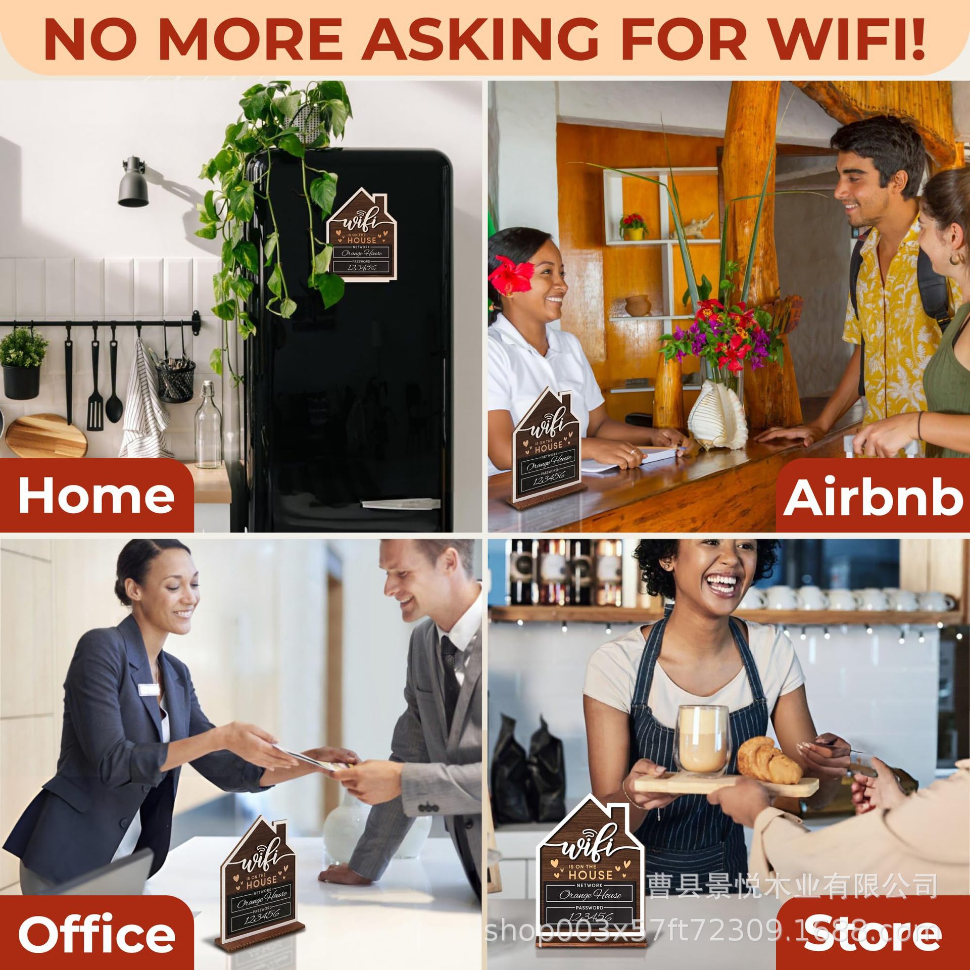 木製のwifiパスワード提示カードのデスクトップはデスクトップの手書きの家の形を並べてWiFiパスワード展示カードを並べます。