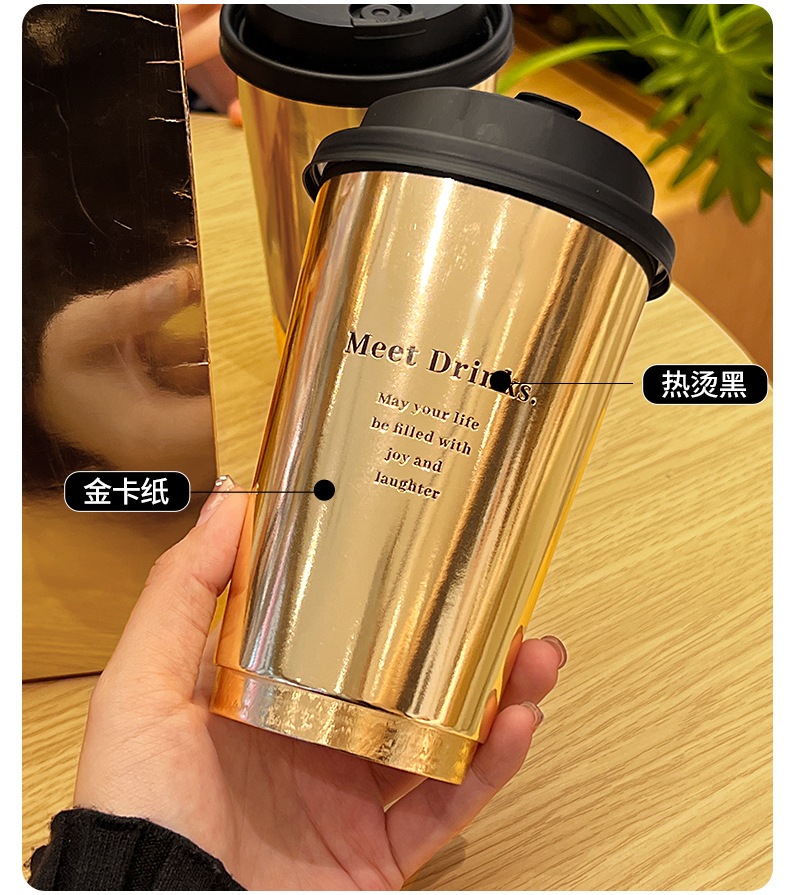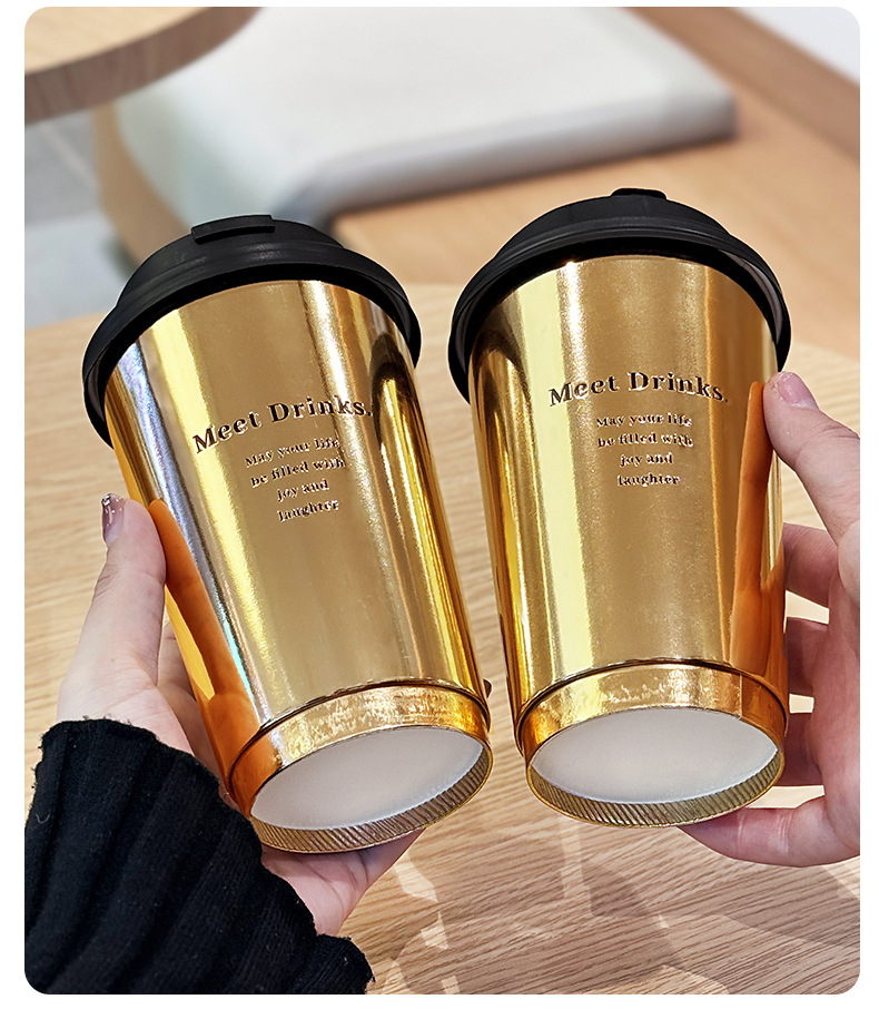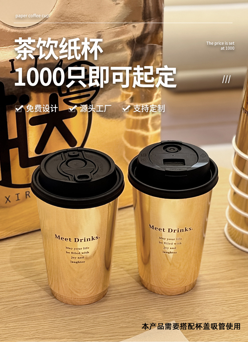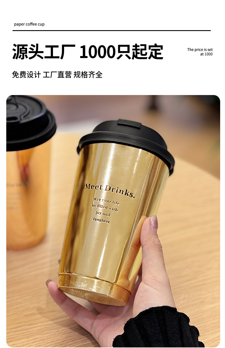 ネット赤爆金金色ミルクティーコップ一度に蓋付き商用外に厚い冷たい飲み物の紙コップを持ってカスタマイズする