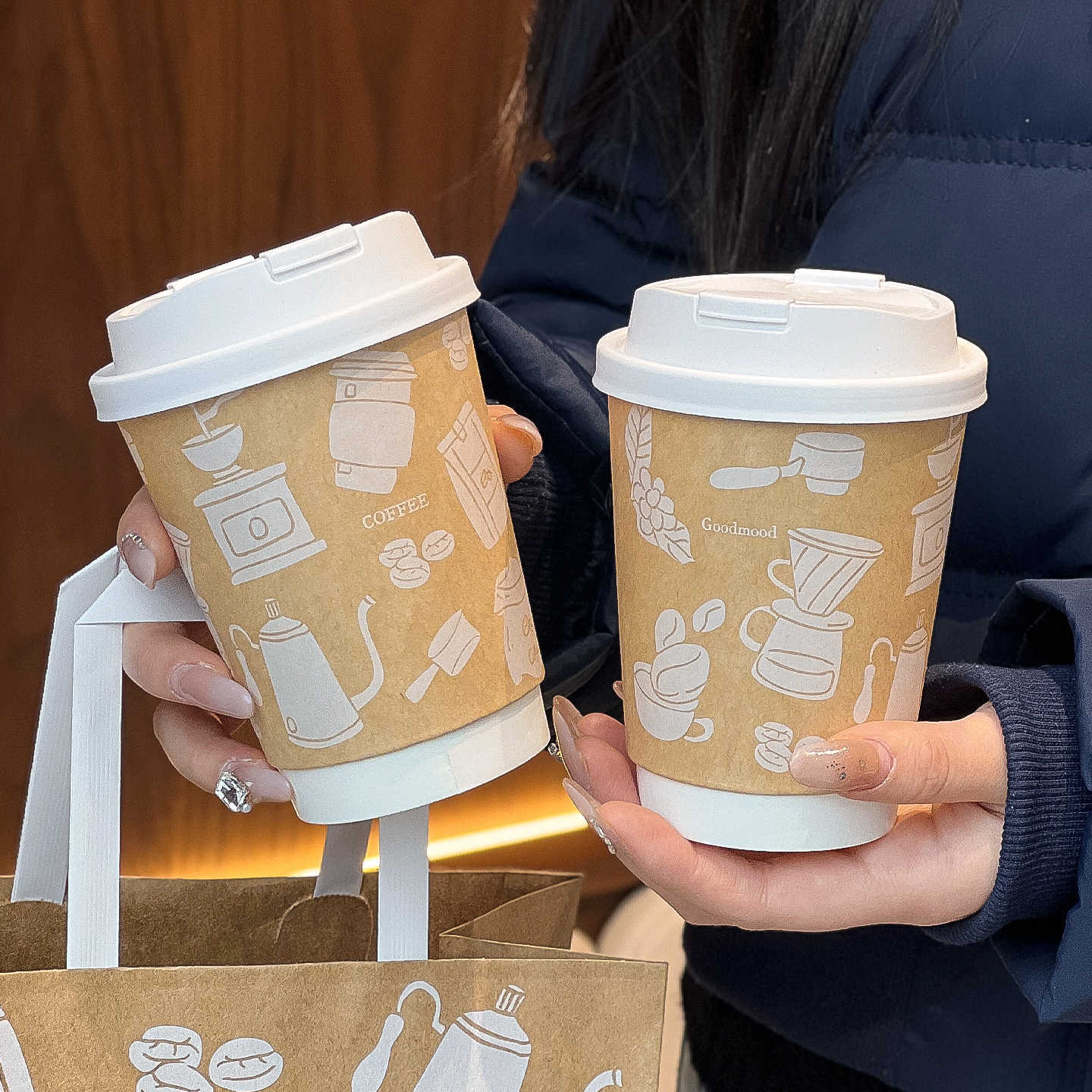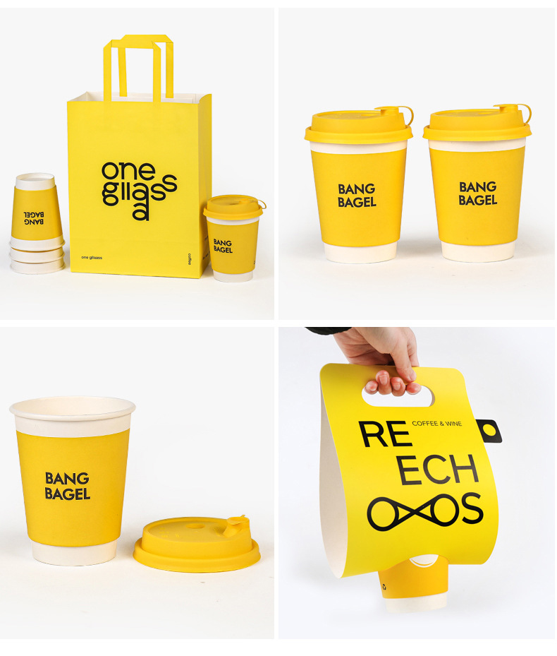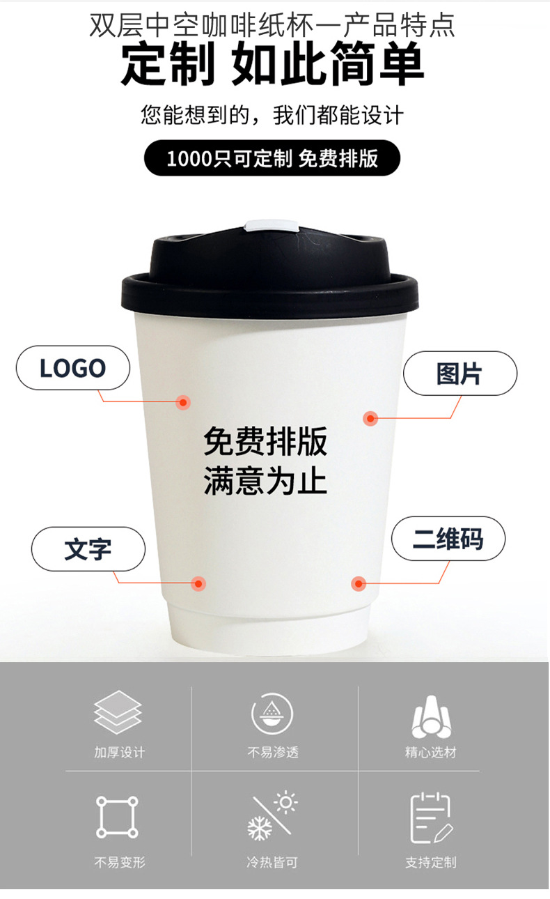 使い捨てコーヒーミルクティー二層中空純白テイクアウトホットドリンク包装抗火傷カバー紙コップ商業印刷ロゴ