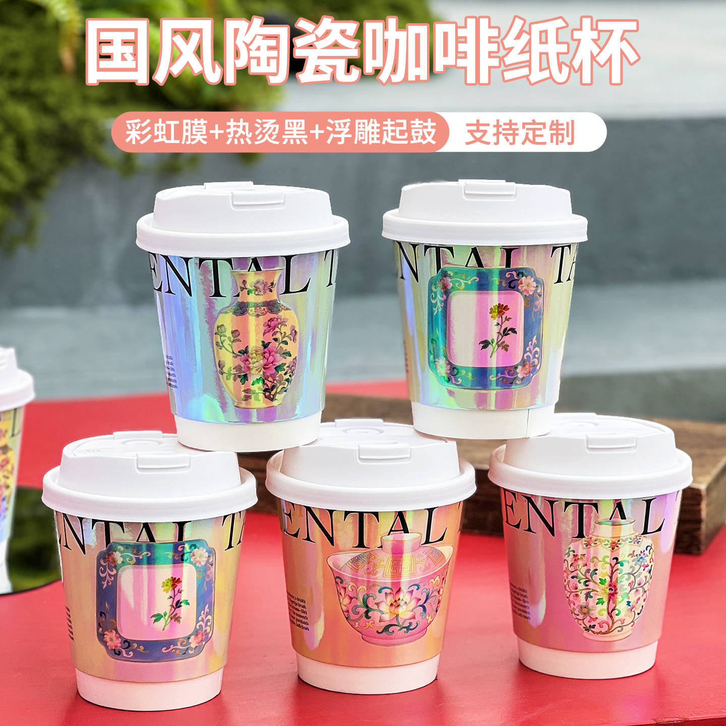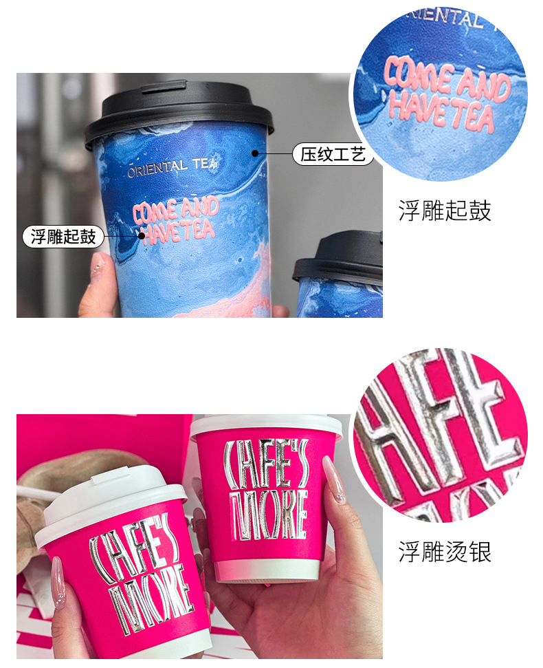 一次性咖啡杯浮雕起鼓网红冷热饮奶茶纸杯商用外带盖打包杯子定制