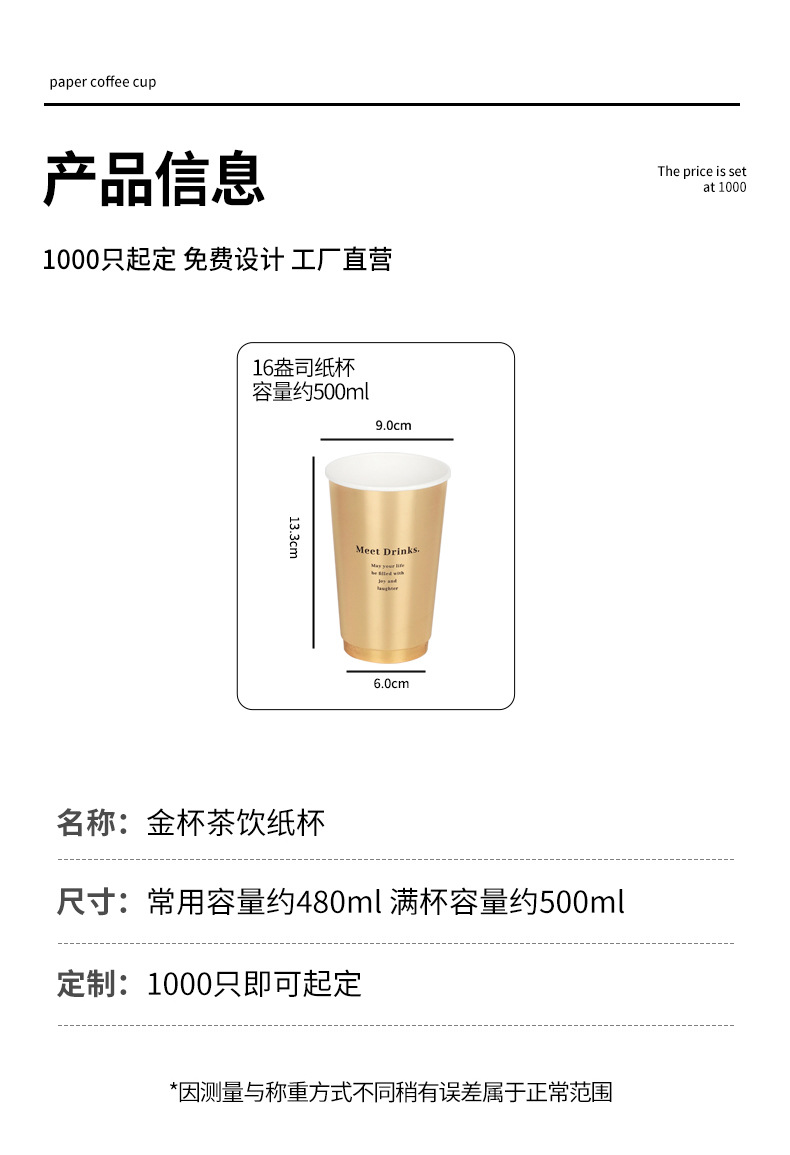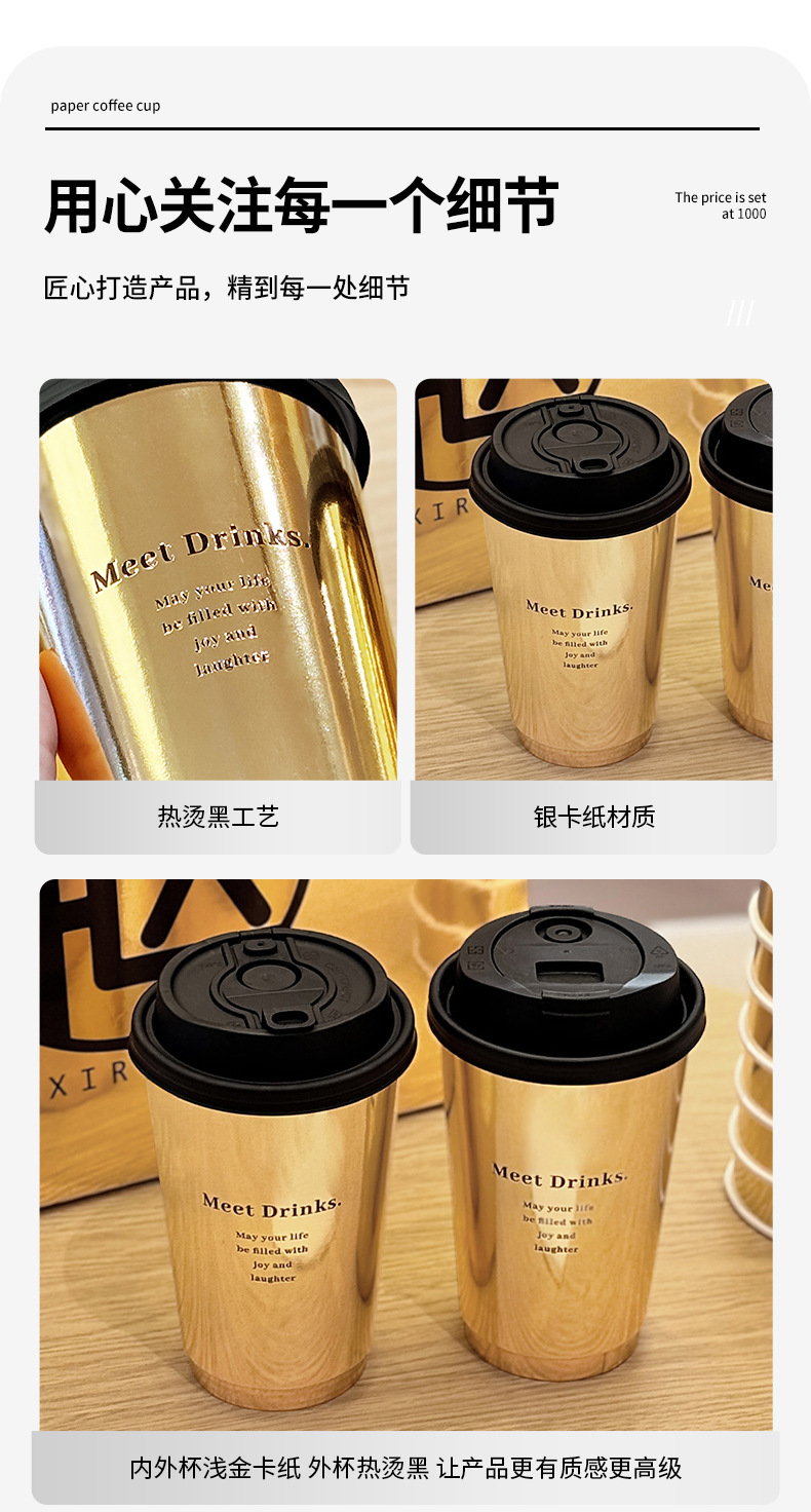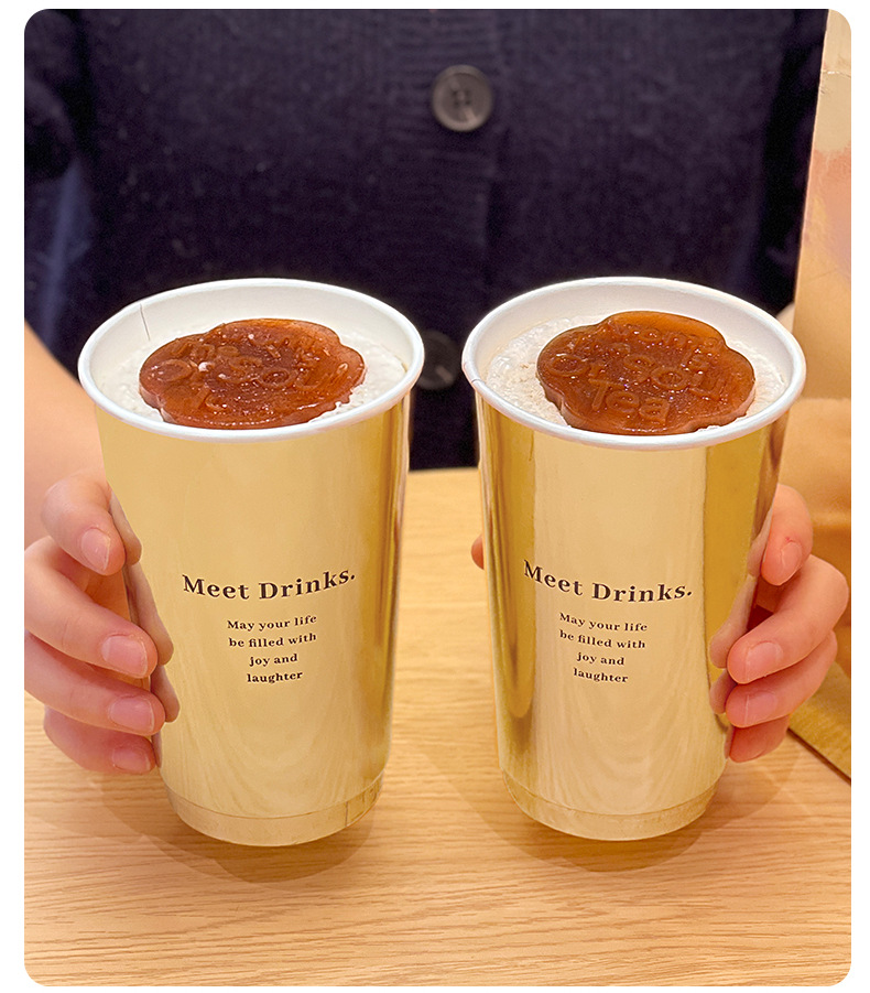 新しい金カードミルクティー紙コップ使い捨てコーヒーカップ500ml茶飲紙コップ