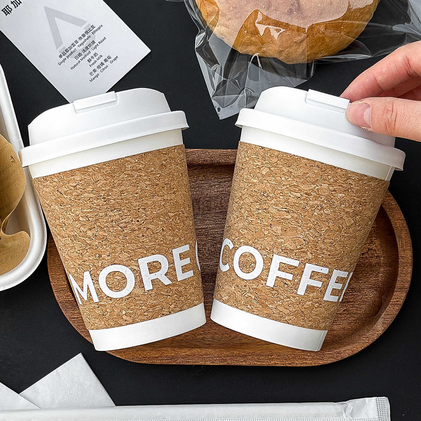 软木杯一次性咖啡杯子带盖创意便携热饮外卖打包奶茶纸杯定制logo