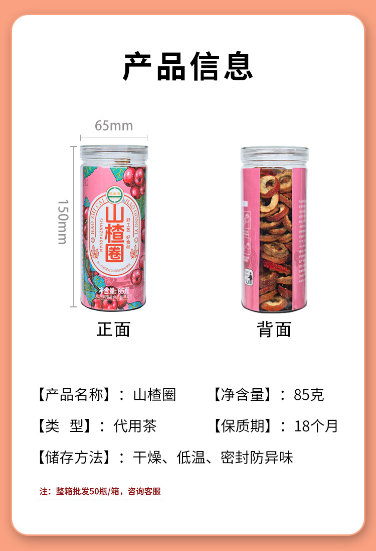 乾燥サンザシ85g缶詰、種なしサンザシリング、サンザシスライス、フルーツ冷泡茶、源産地メーカー卸売、OEM対応