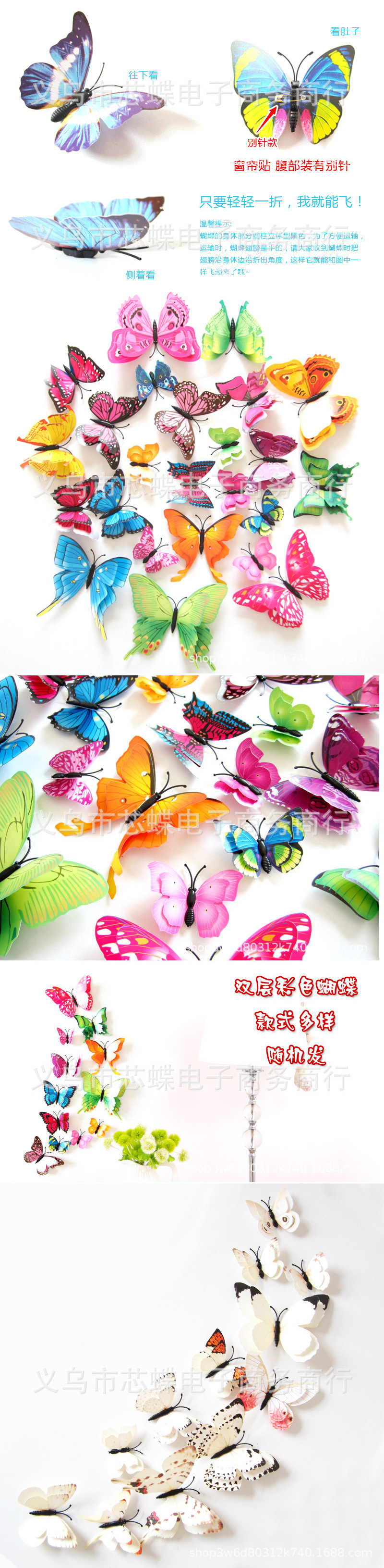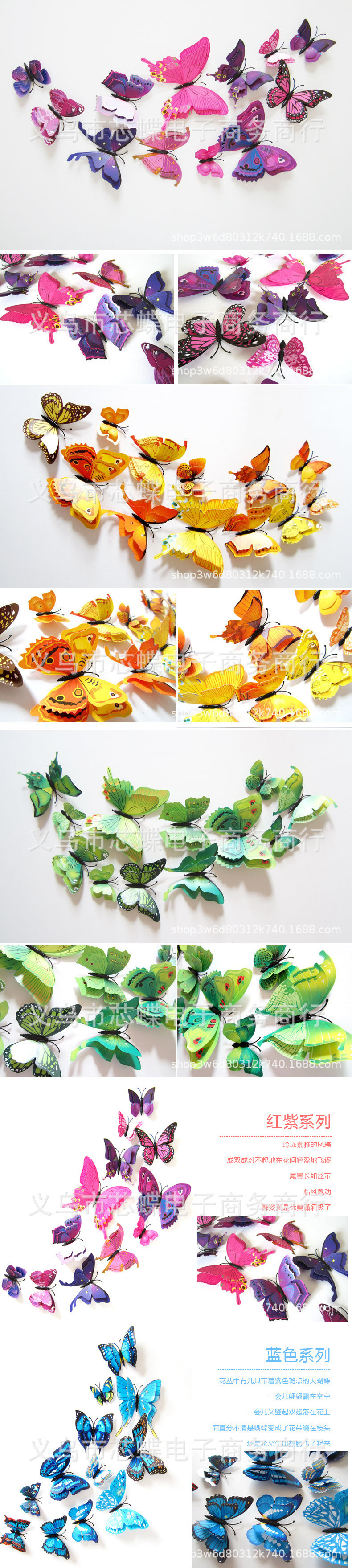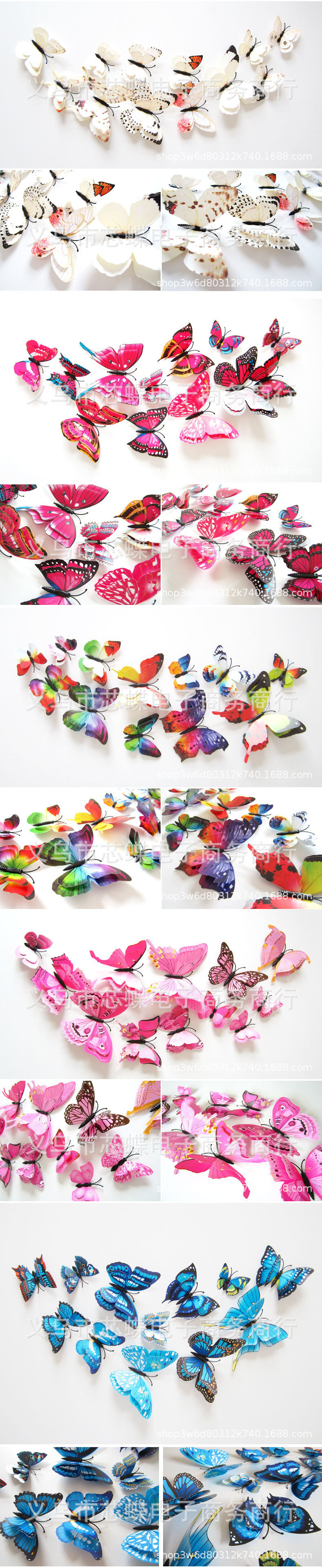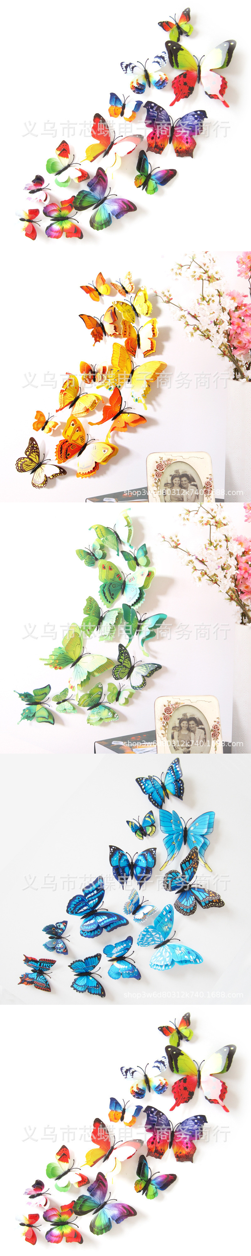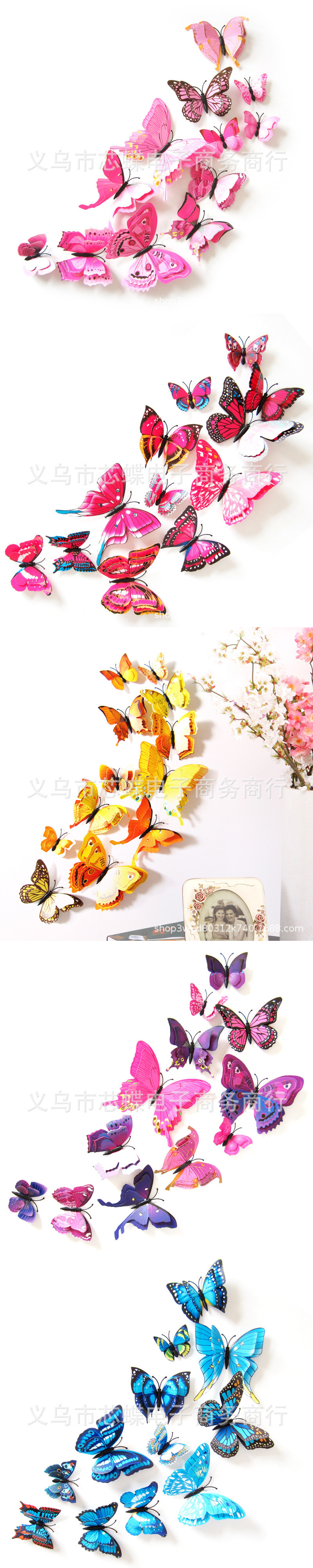 3立体二重の蝶の家の装飾のシミュレーションの蝶のカラーの蝶の壁はピンの金を貼ります。