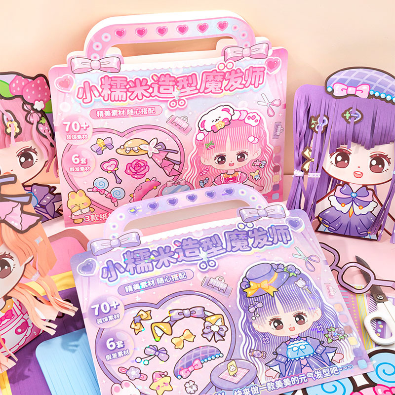 もち米の静かな本の女の子の新型の形の魔法使いは紙の子供の小さい王女の理髪の形師の手作りのdiyを切ります。