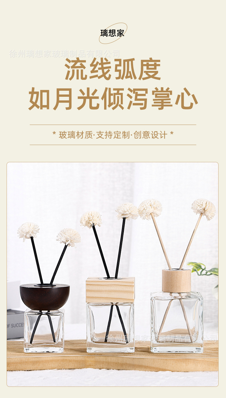 シンプルなアロマディフューザーボトル、空ボトル、室内装飾、ホテル用ディフューザーボトル、容器、無火アロマ、ガラスボトル、透明ガラス