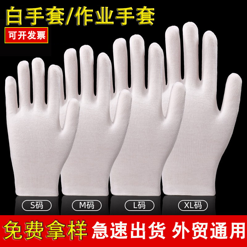 三筋带扣白色礼仪手套高级首饰珠宝文玩尼龙手套透气吸汗阅兵手套