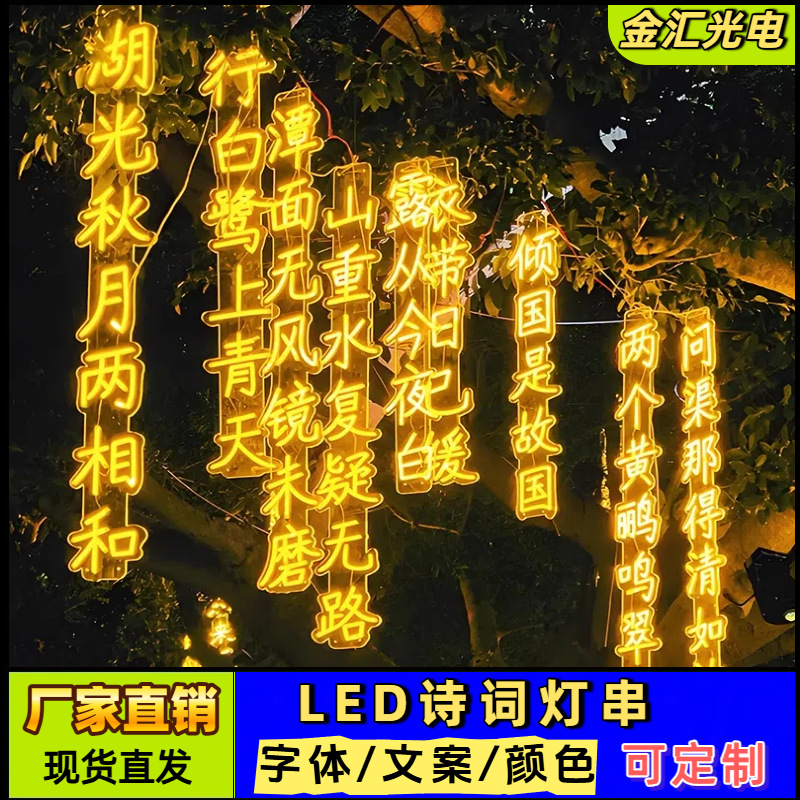 LED霓虹灯古诗词灯串挂树灯牌防水彩灯景区户外发光字树木景观灯