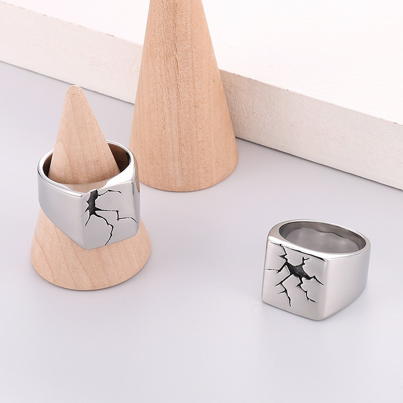 跨境欧美潮流不锈钢宽面扳指 时尚个性设计抹黑裂纹圆面男士戒指
