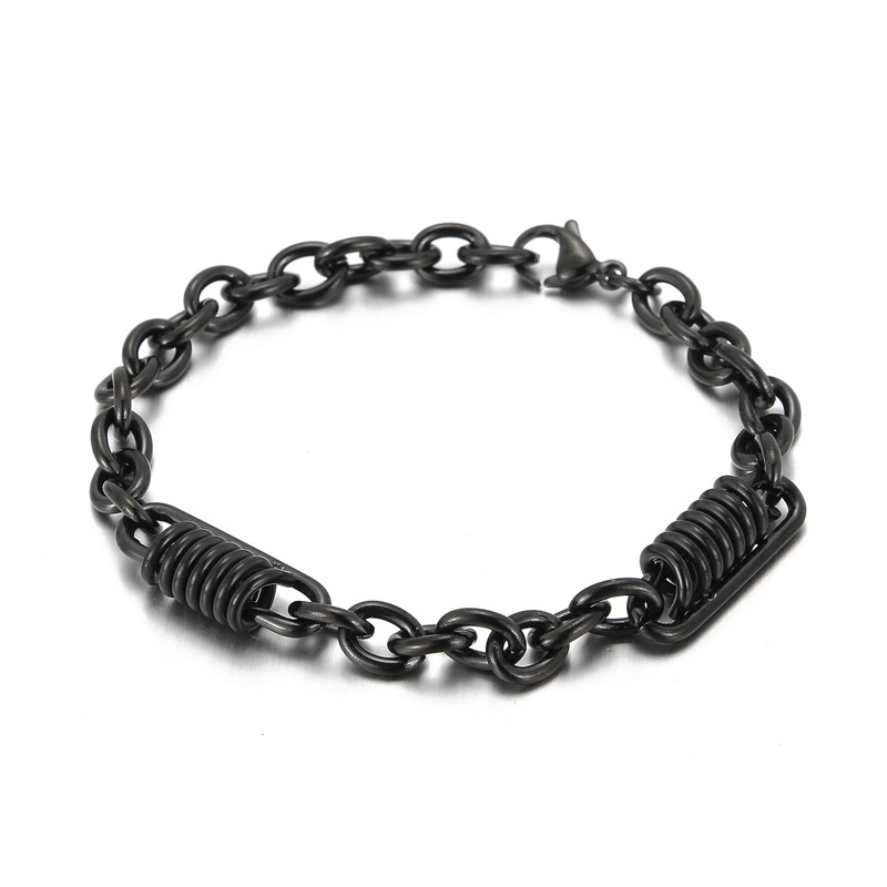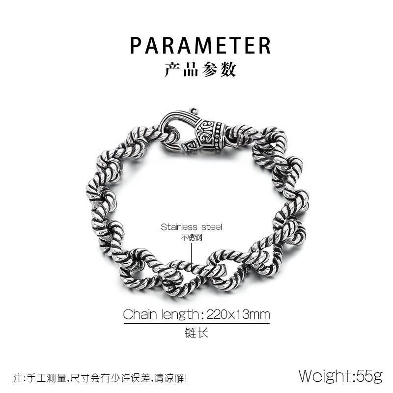 ヨーロッパとアメリカの黒色ファッション回転チェーンブレスレット、レトロでシンプルなビザンチンツイストハンドメイドチェーン、チタン鋼メンズブレスレット