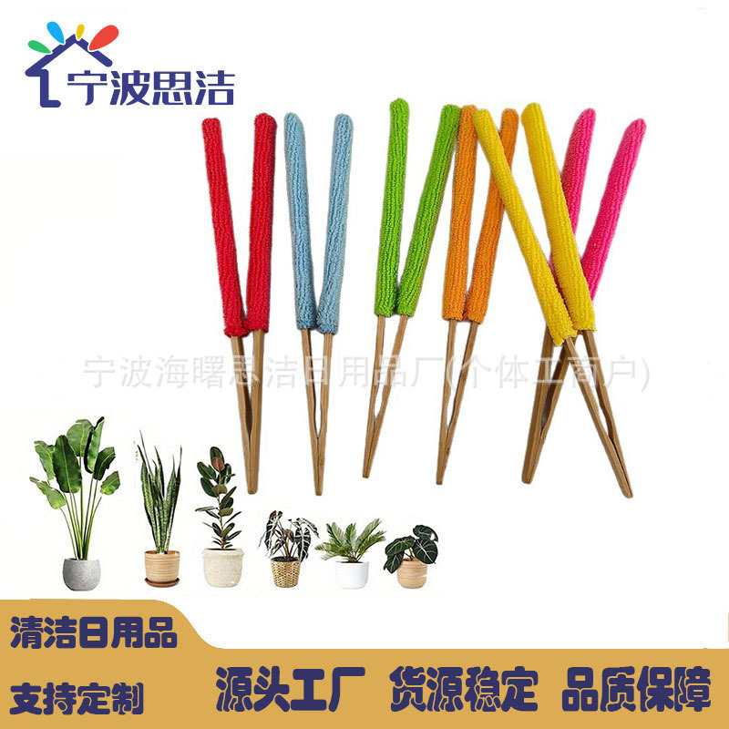 跨境超细纤维毛巾布套拆卸竹夹树叶清理夹多功能清洁刷棒Temu代发