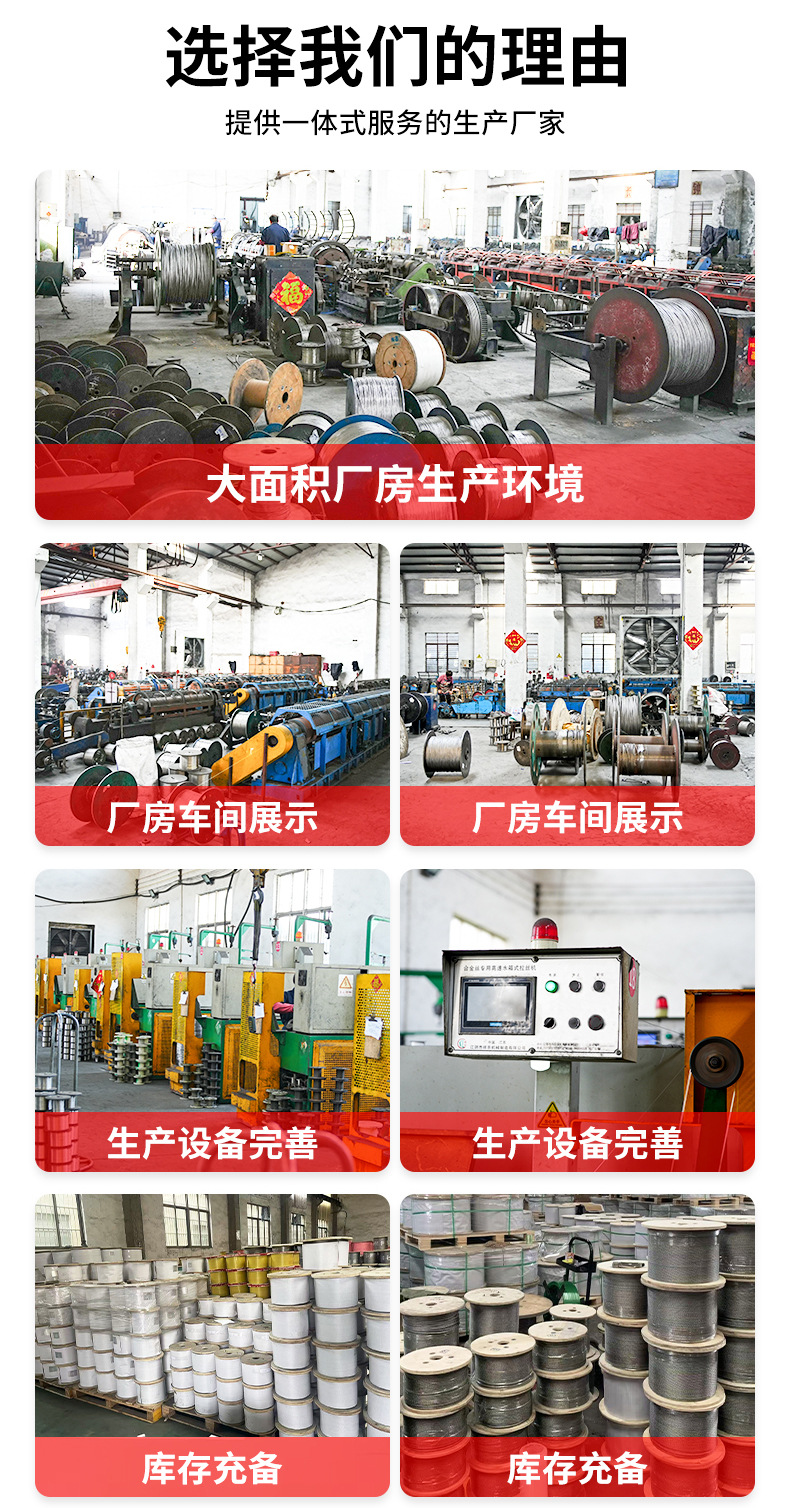 304ステンレスワイヤロープスポット卸売り光沢面牽引ロープ昇降物干し316ワイヤーワイヤーロープ