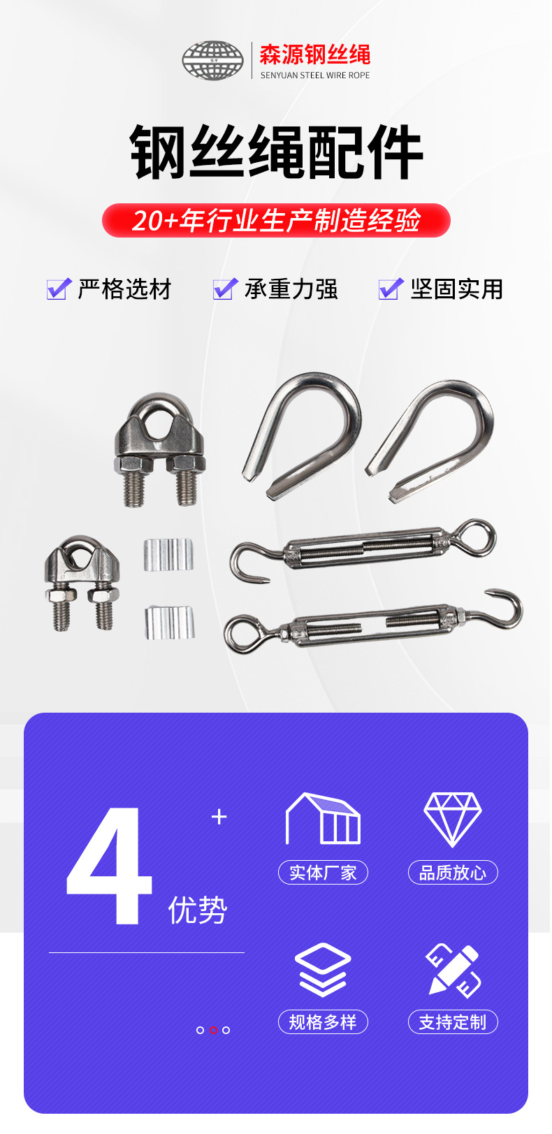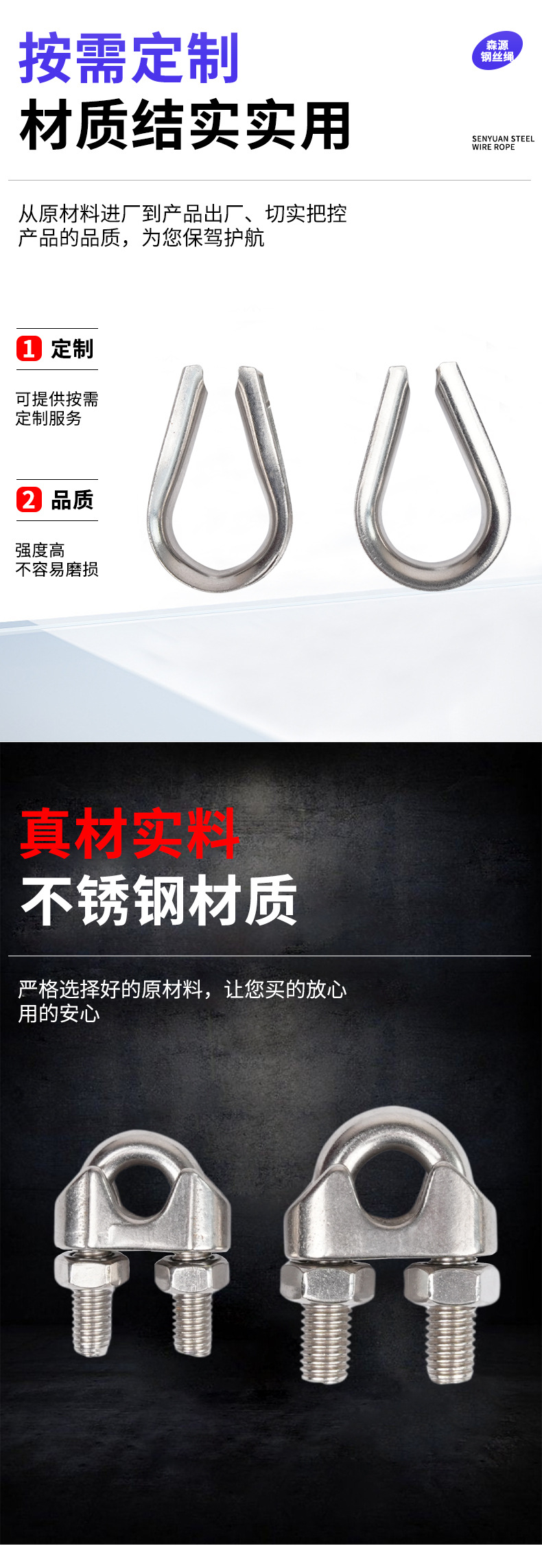 工場価格卸売りu型チャック304ステンレス製チャックワイヤーロープチャック