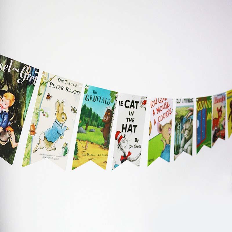 教室の装飾は旗の魚の尾をつないで旗の英語の絵本のストーリの色の旗のクラスの環を作って子供の教育の道具のシーンの配置を作ります。