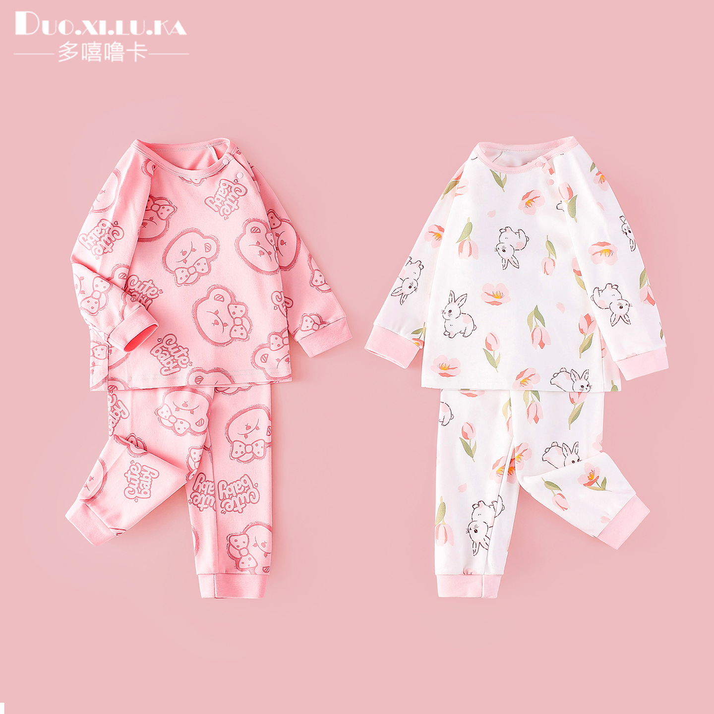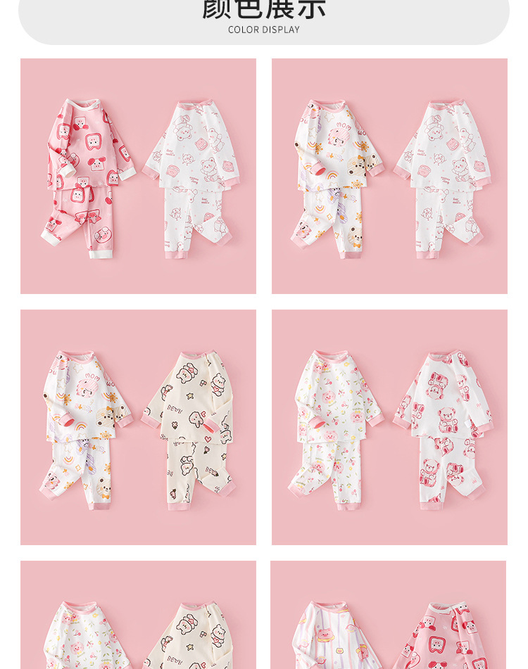 乳幼児服春秋タイプの赤ちゃんセットの子供用パジャマ秋服秋ズボンの分離式セットが可愛いです。