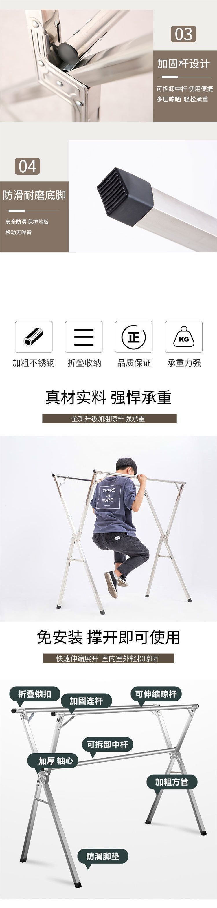 。ステンレス製折りたたみ物干しラック、伸縮式物干しラック、床置き物干しロッド、屋外物干しラック、バルコニー屋内