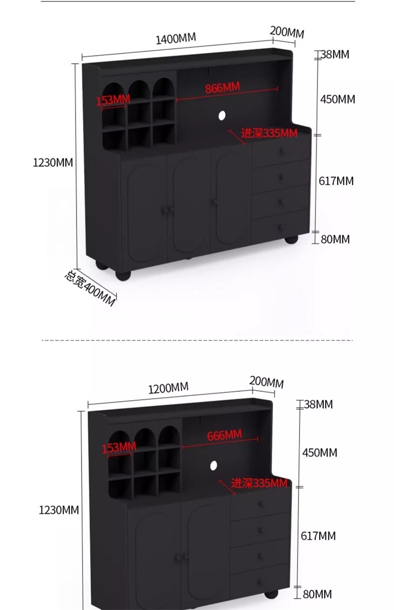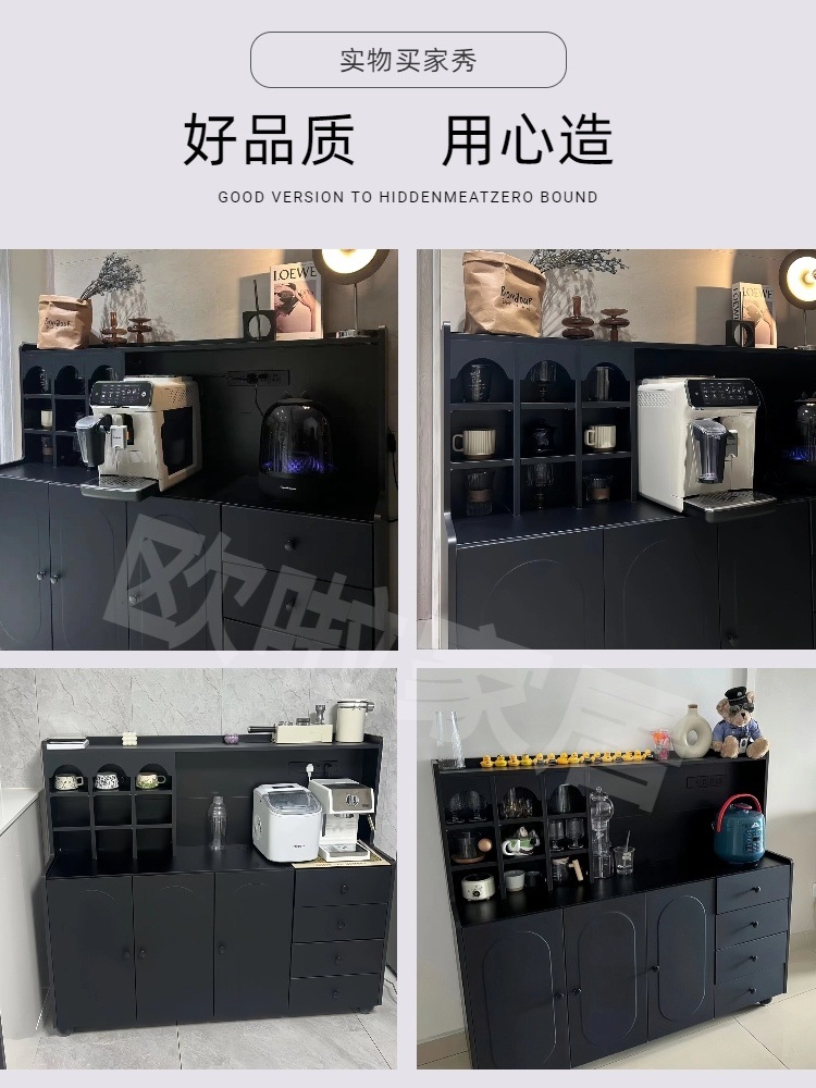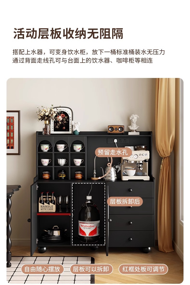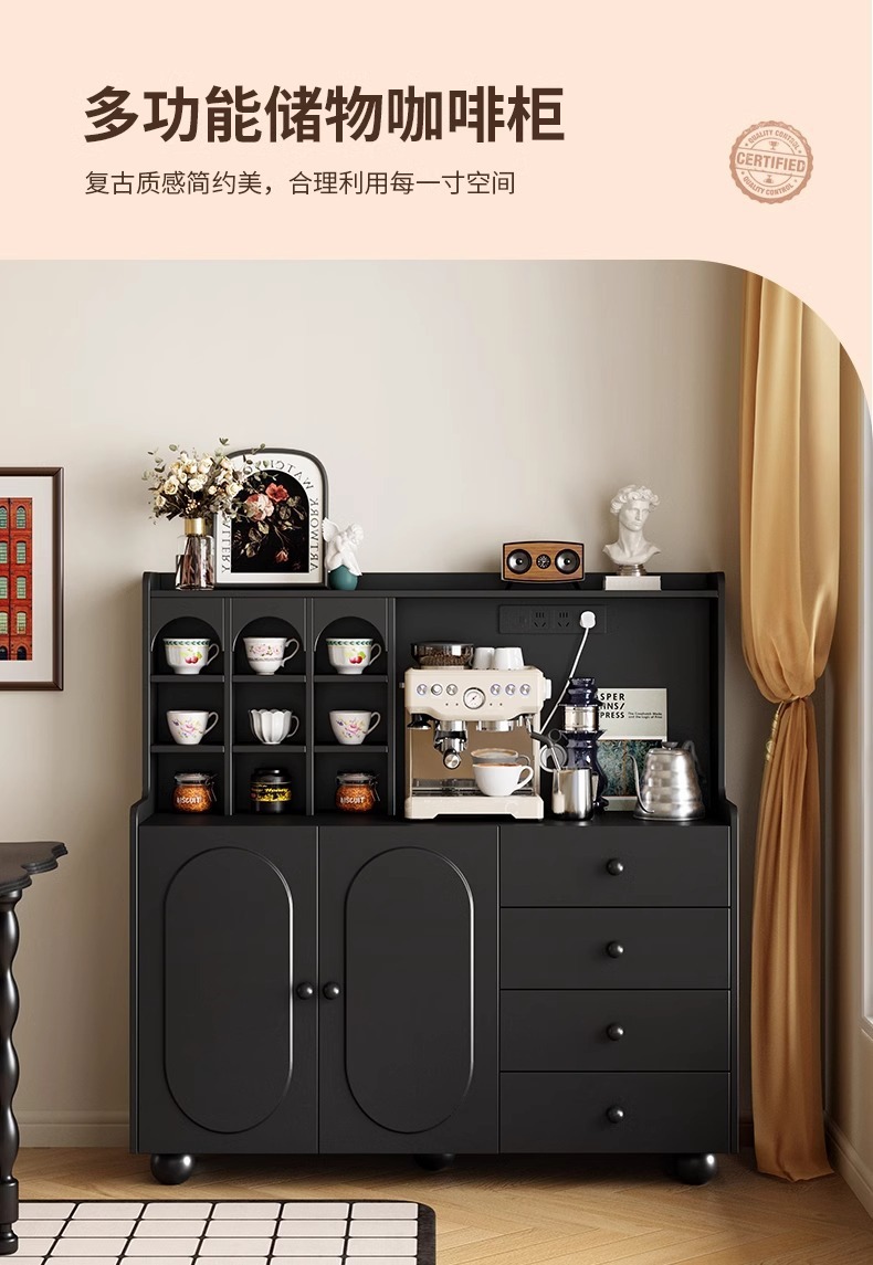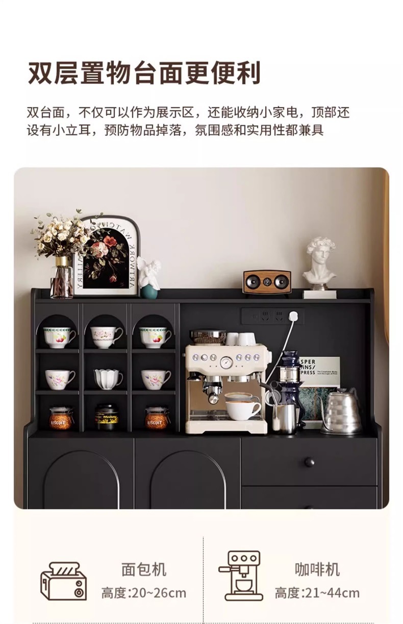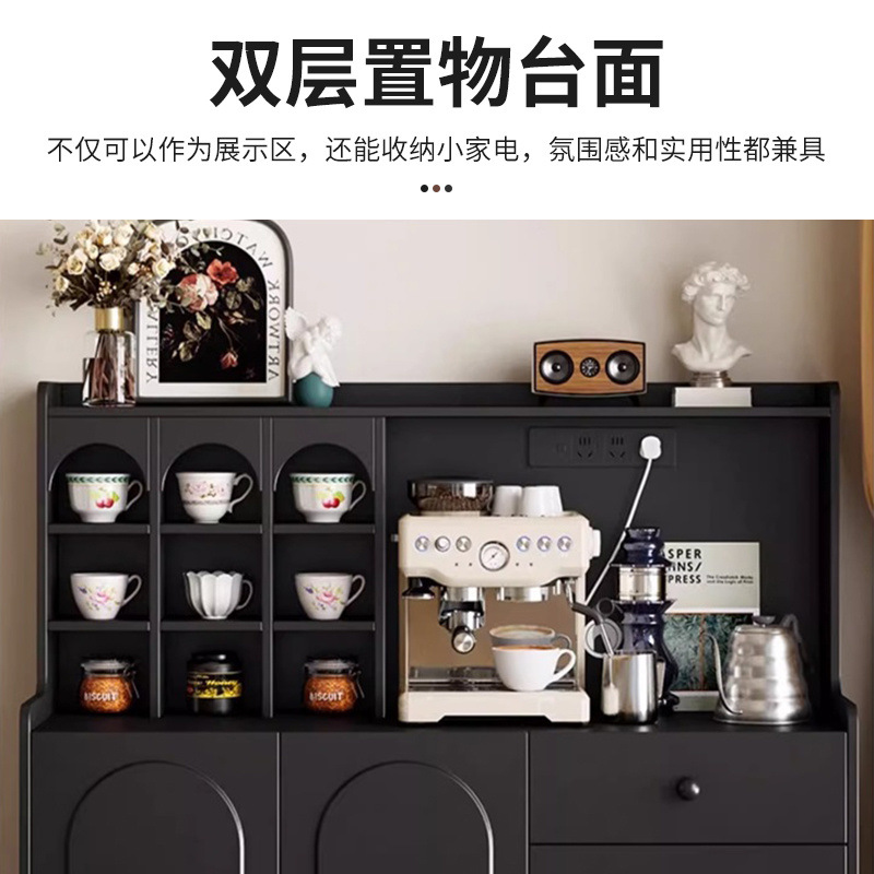 轻奢法式黑色实木餐边柜茶水柜小户型客厅斗柜沙发旁柜咖啡机柜