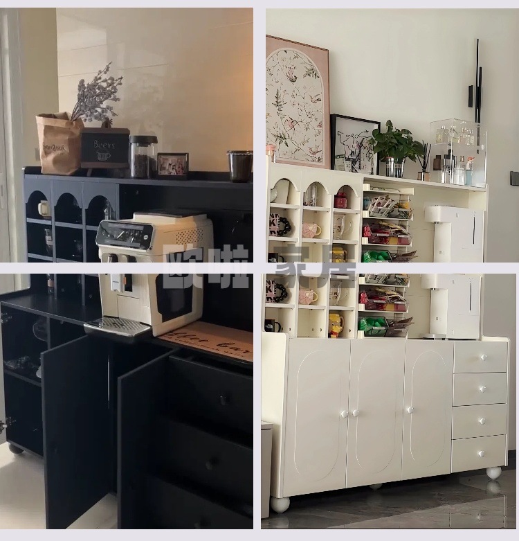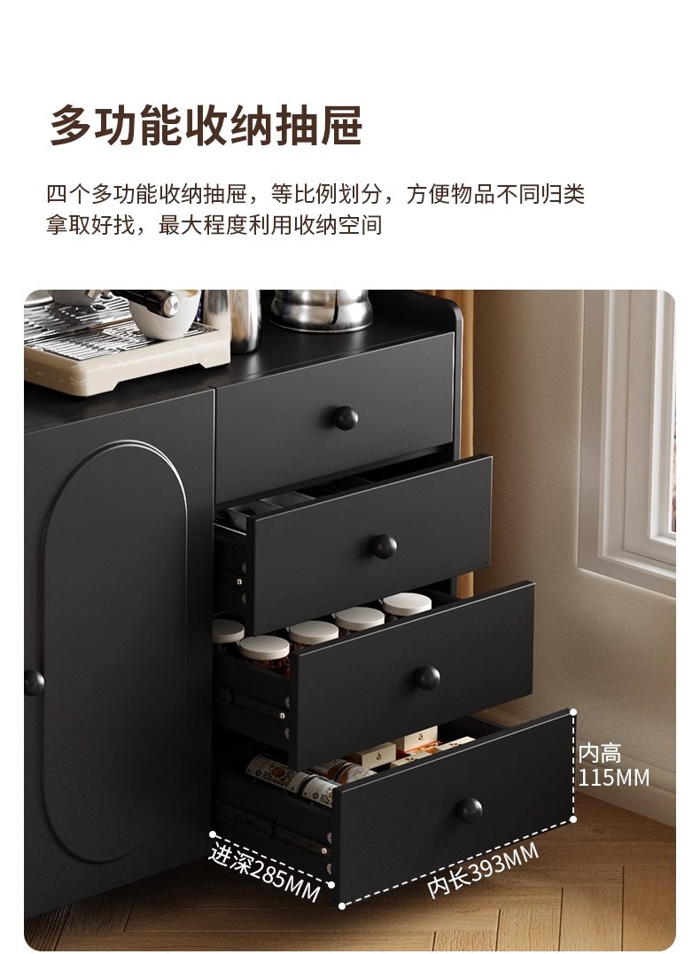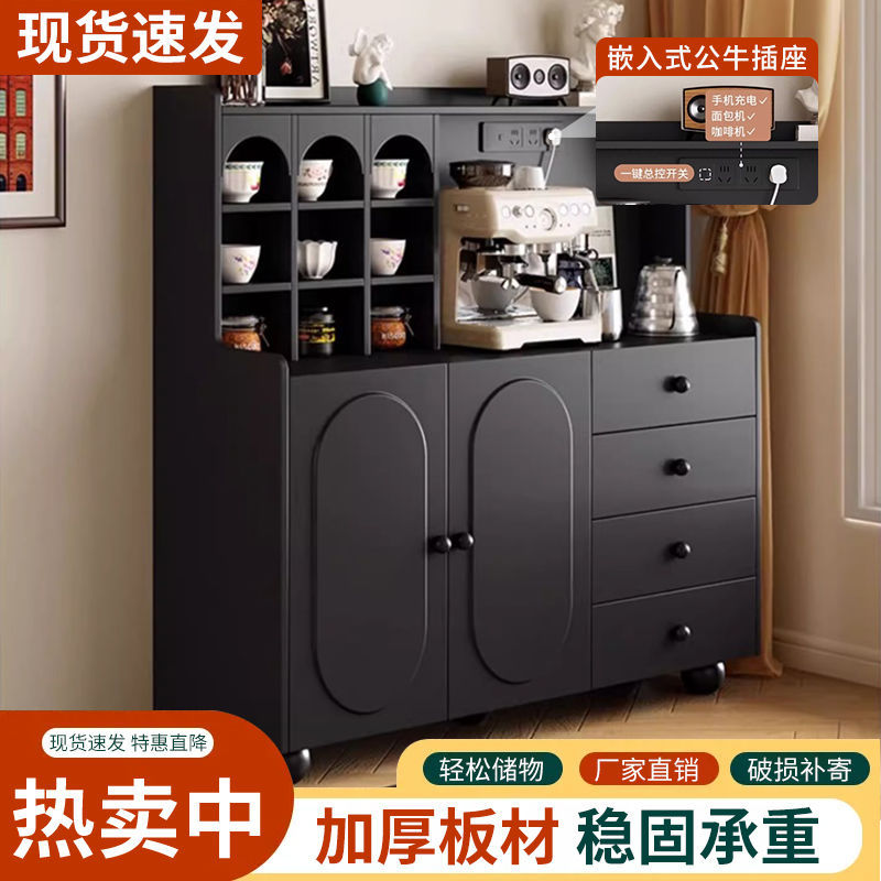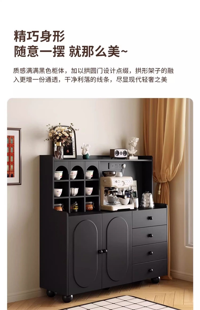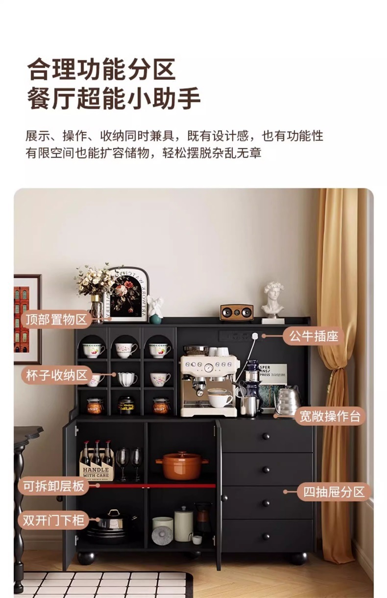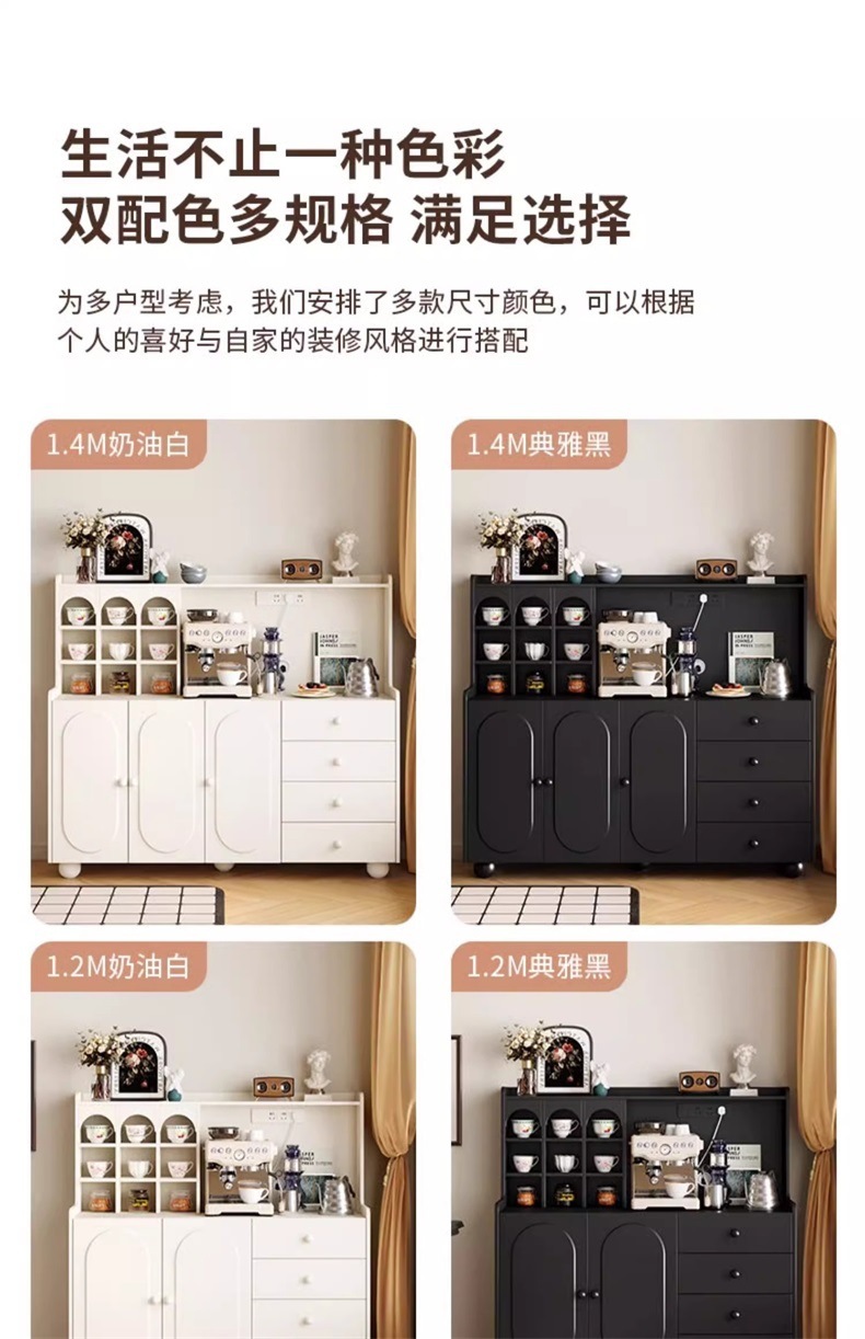 实木餐边柜客厅家用茶水柜奶油风储物柜厨房简约橱柜收纳柜置物柜