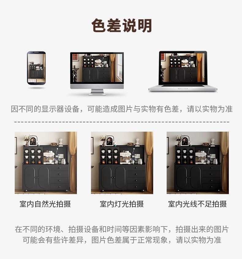 法式厨柜轻奢黑色实木餐边柜水柜小户型客厅斗柜沙发旁柜咖啡