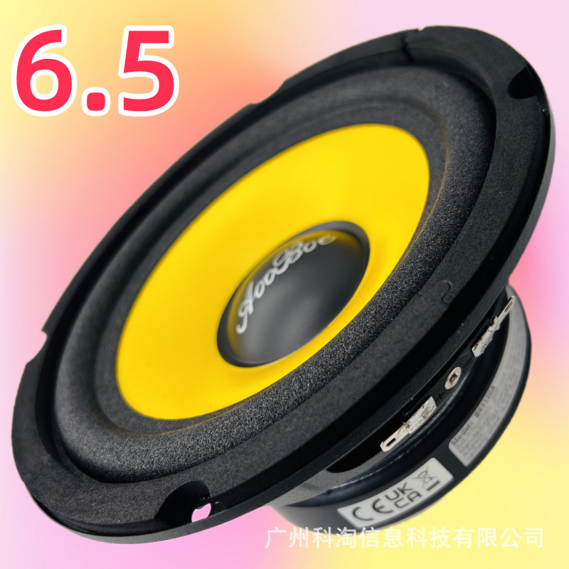 厂家批发 6.5寸中低音喇叭50W黄色纸盆铁盆架车载扬声器