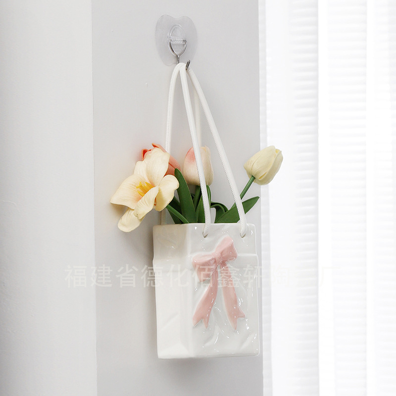 クロスボーダー壁掛けセラミックリボン花瓶リビングルームフラワーアレンジメント家の装飾装飾品ハンドバッグフラワーアレンジメントホリデーアレンジメント